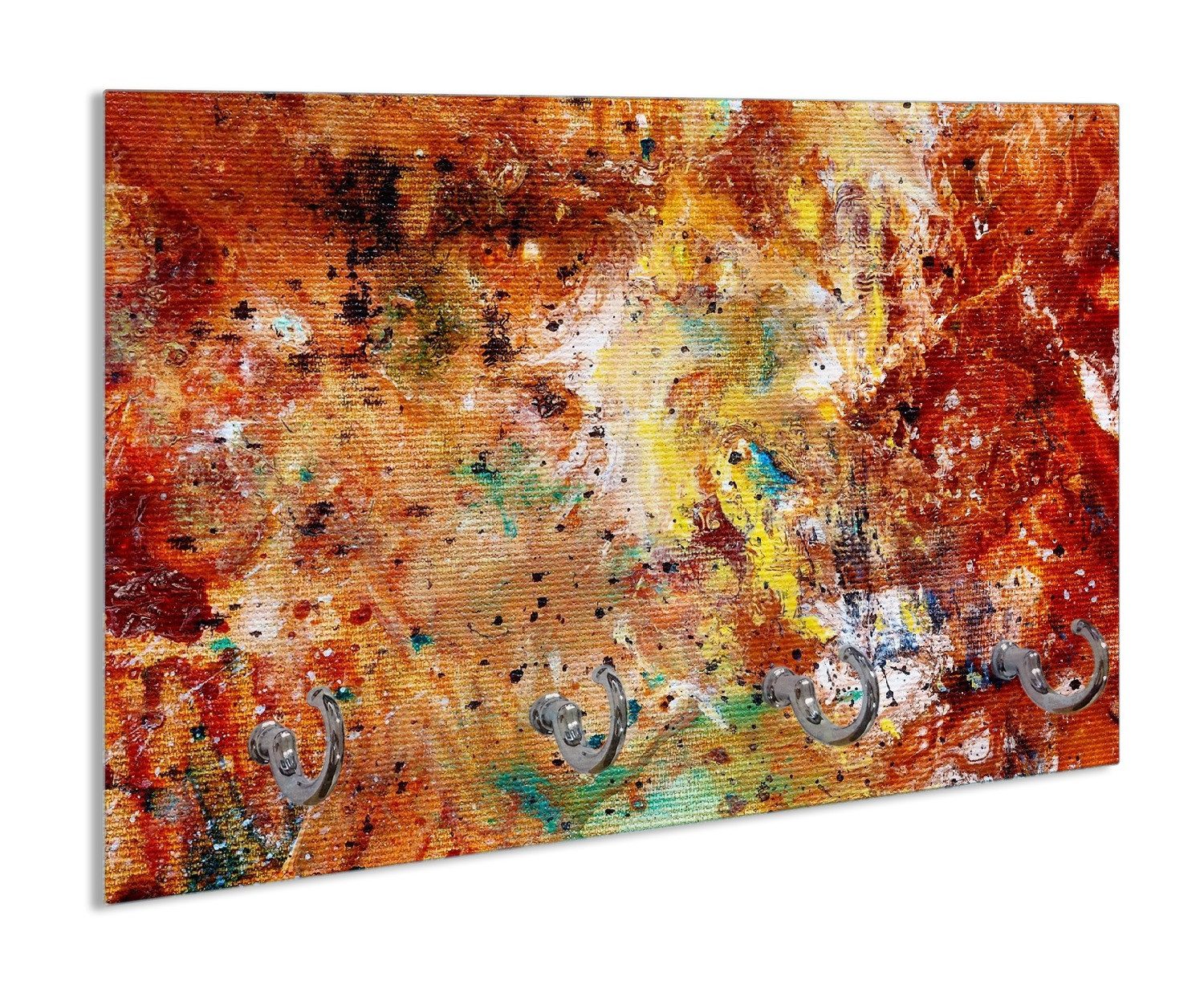 Verschiedenste Farbkleckse und Spritzer mitschen sich zu einem bunten durcheinander. Das Kunstwerk ist auf Leinwand gemalt in den farben gelb, orange und rot.