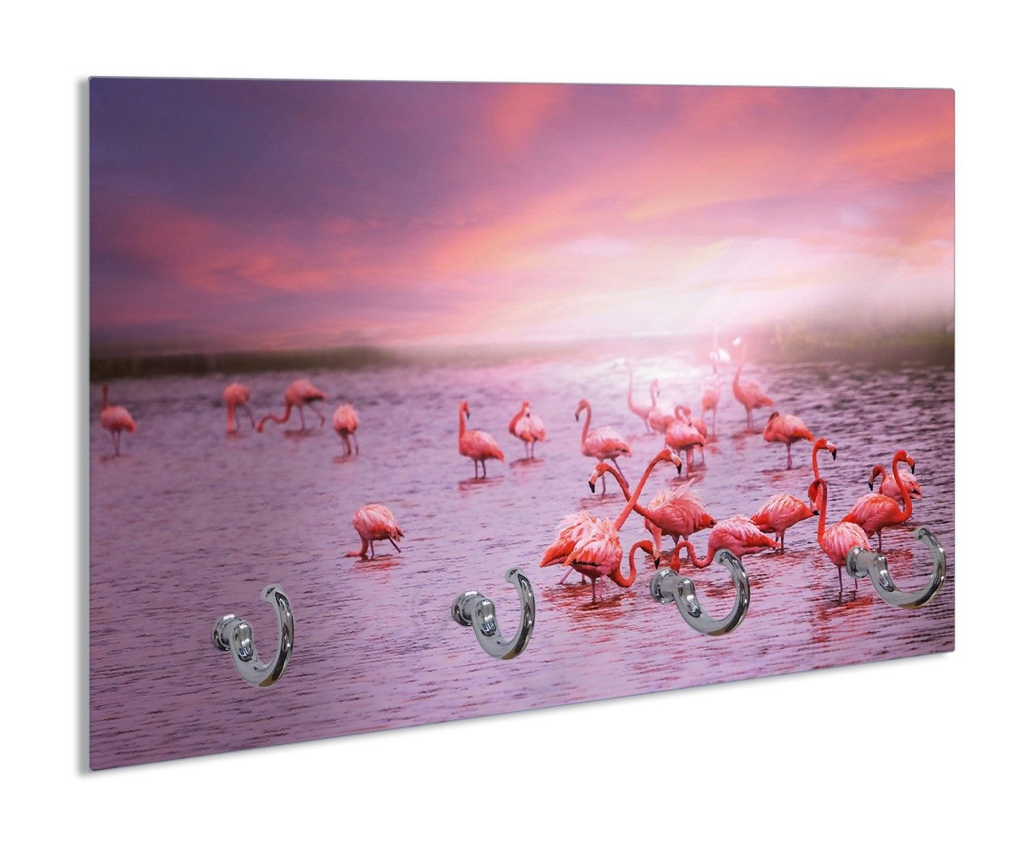 Wallario Handtuchhalter Rosa Flamingos bei Sonnenuntergang, aus Glas mit 4 Metallhaken