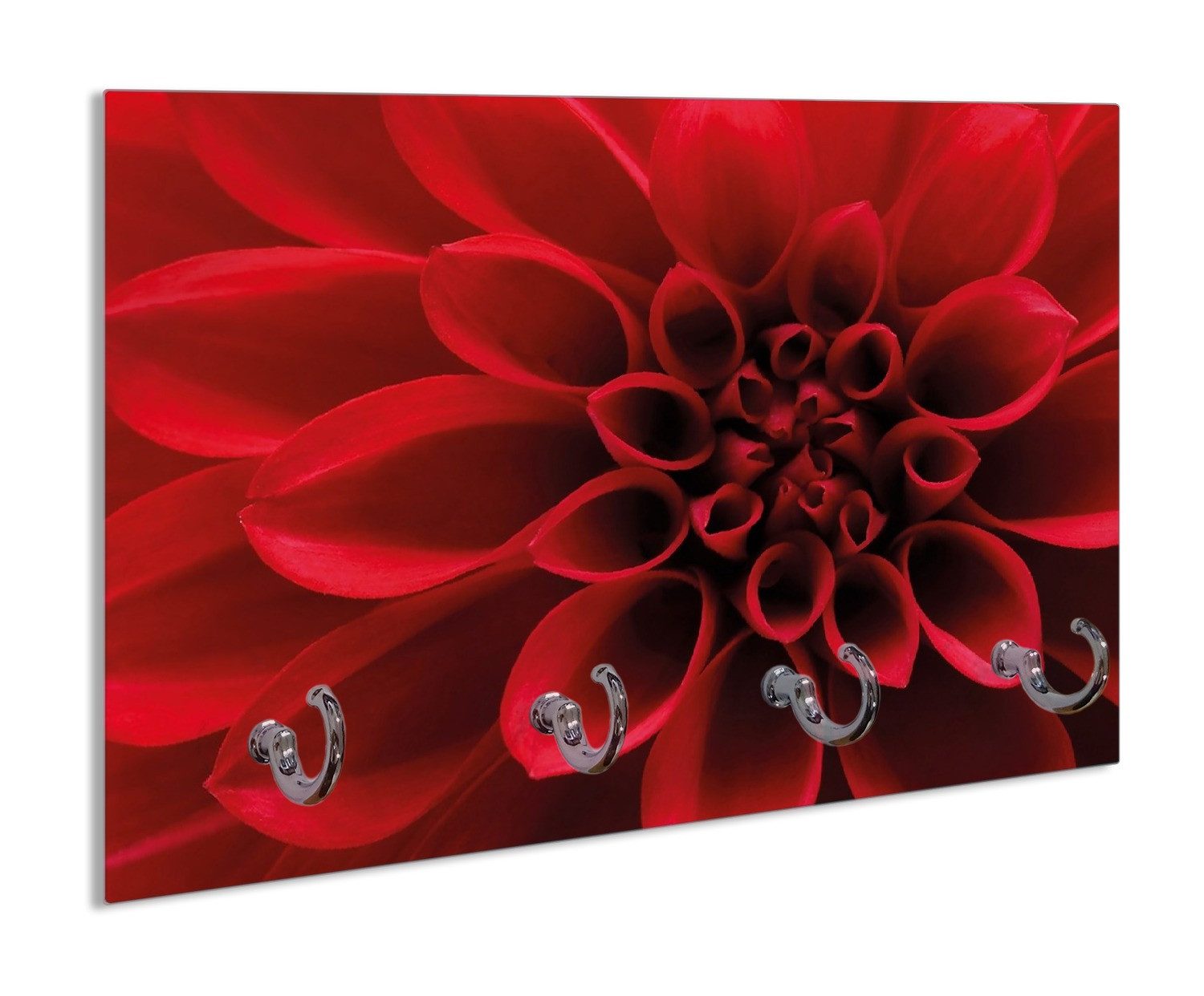 Wallario Handtuchhalter Rote Dahlienblüte in Nahaufnahme, aus Glas mit 4 Metallhaken