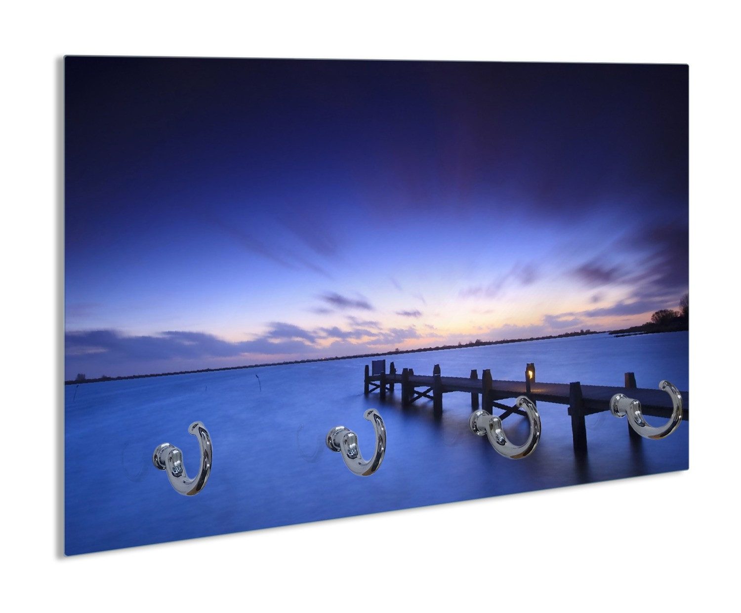 Wallario Handtuchhalter Steg bei Abenddämmerung - Blauer Himmel bei Nacht, aus Glas mit 4 Metallhaken