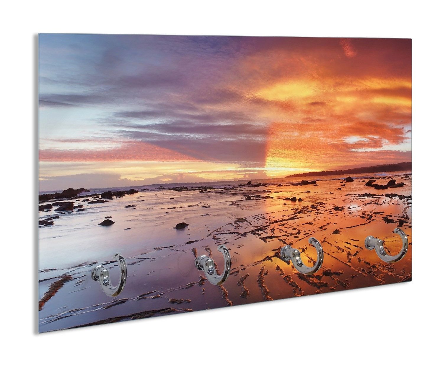 Wallario Handtuchhalter Wattwanderung am Meer bei Sonnenuntergang, aus Glas mit 4 Metallhaken