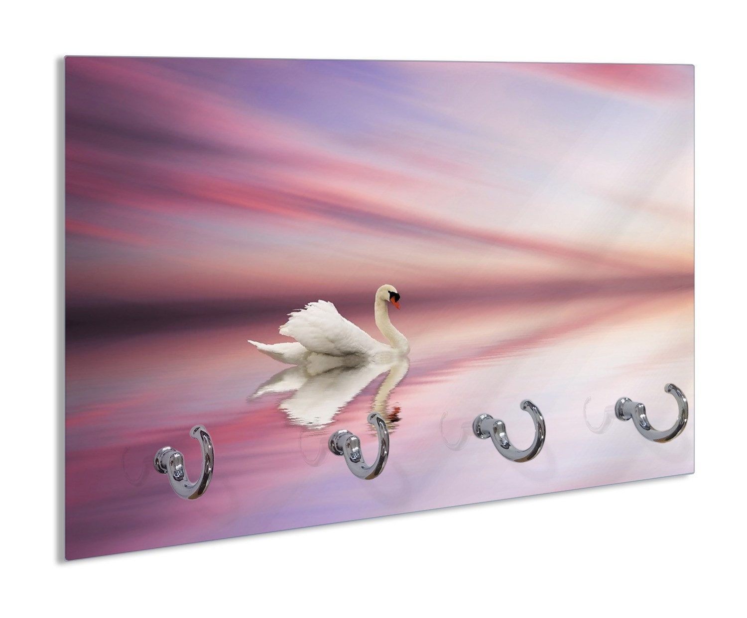 Wallario Handtuchhalter Weißer Schwan im rosafarbenen See, aus Glas mit 4 Metallhaken
