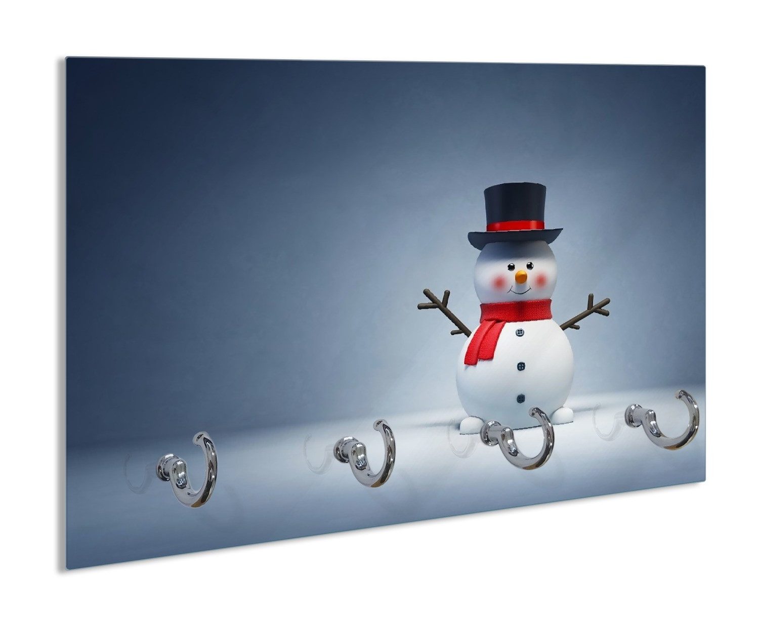 Ein frecher kleiner Schneemann mit schwarzem Zylinder und rotem Schal schaut hier liebevoll lächelnd in die Kamera. Ganz klassisch mit Knöpfen auf dem Bauch und Möhrchen als Nase im Gesicht.