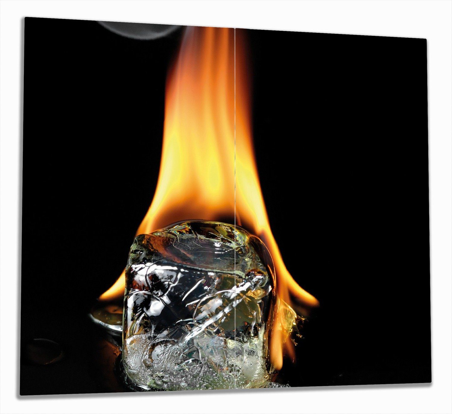 Wallario Herd-Abdeckplatte Brennender Eiswürfel, ESG-Sicherheitsglas, (Glasplatte, 2 tlg., inkl. 5mm Noppen), verschiedene Größen