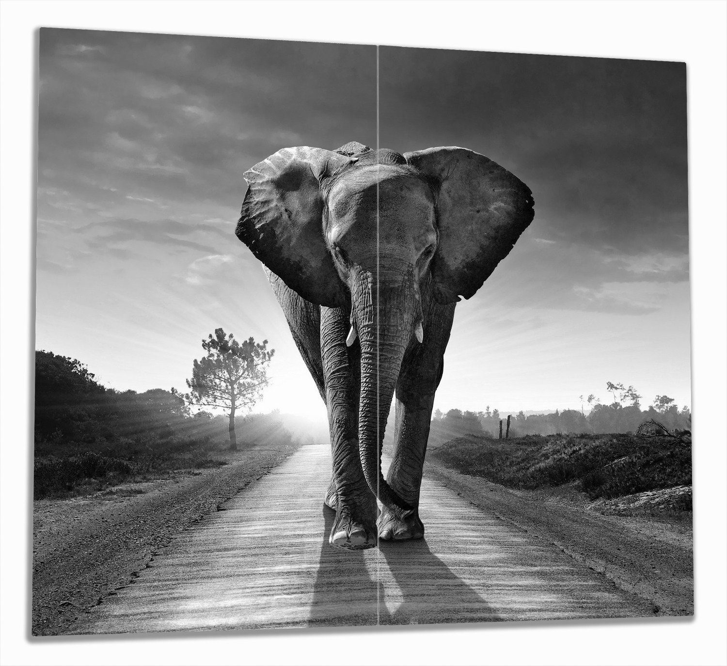Wallario Herd-Abdeckplatte Elefant bei Sonnenaufgang in Afrika schwarzweiß, ESG-Sicherheitsglas, (Glasplatte, 2 tlg., inkl. 5mm Noppen), verschiedene Größen