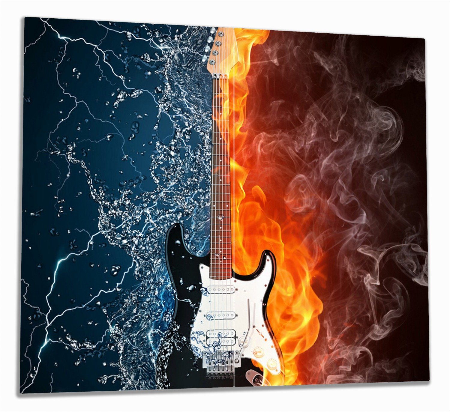 Wallario Herd-Abdeckplatte Feuer-Wasser-Gitarre, ESG-Sicherheitsglas, (Glasplatte, 2 tlg., inkl. 5mm Noppen), verschiedene Größen