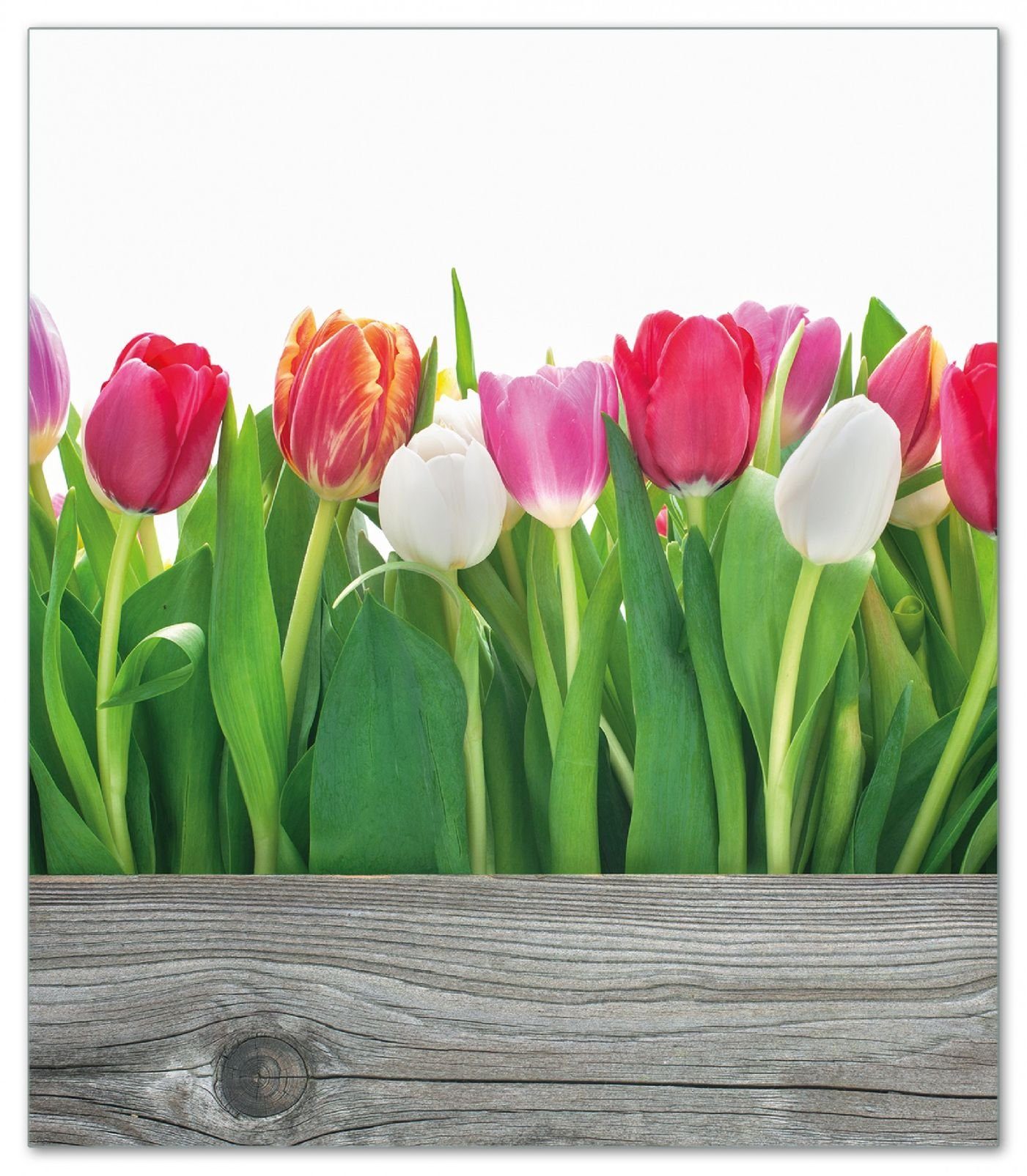 Wallario Herd-Abdeckplatte Rote weiße und pinke Tulpen im Frühling, ESG-Sicherheitsglas, (Glasplatte, 1 tlg., inkl. 5mm Noppen), verschiedene Größen