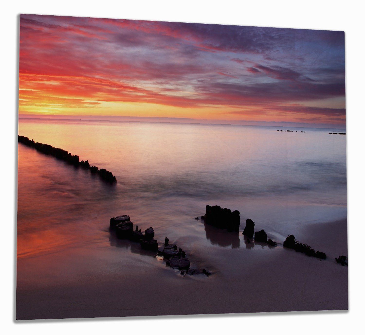 Wallario Herd-Abdeckplatte Sandstrand im Sonnenuntergang - Roter Himmel, ESG-Sicherheitsglas, (Glasplatte, 1 tlg., inkl. 5mm Noppen), verschiedene Größen