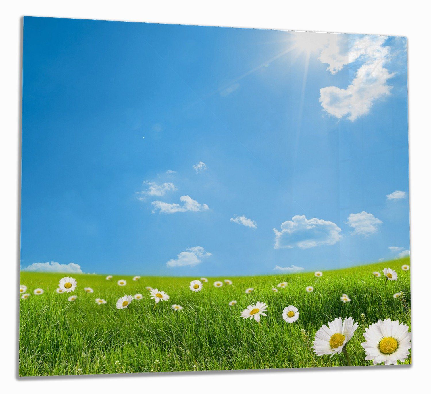 Wallario Herd-Abdeckplatte Sommerwiese - Weiße Gänseblümchen vor blauem Himmel, ESG-Sicherheitsglas, (Glasplatte, 1 tlg., inkl. 5mm Noppen), verschiedene Größen