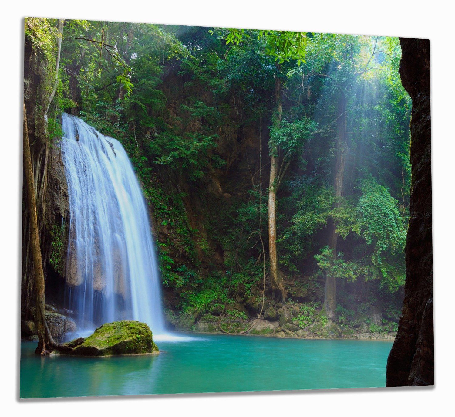 Wallario Herd-Abdeckplatte Wasserfall im Wald am See Idylle in Thailand, ESG-Sicherheitsglas, (Glasplatte, 1 tlg., inkl. 5mm Noppen), verschiedene Größen