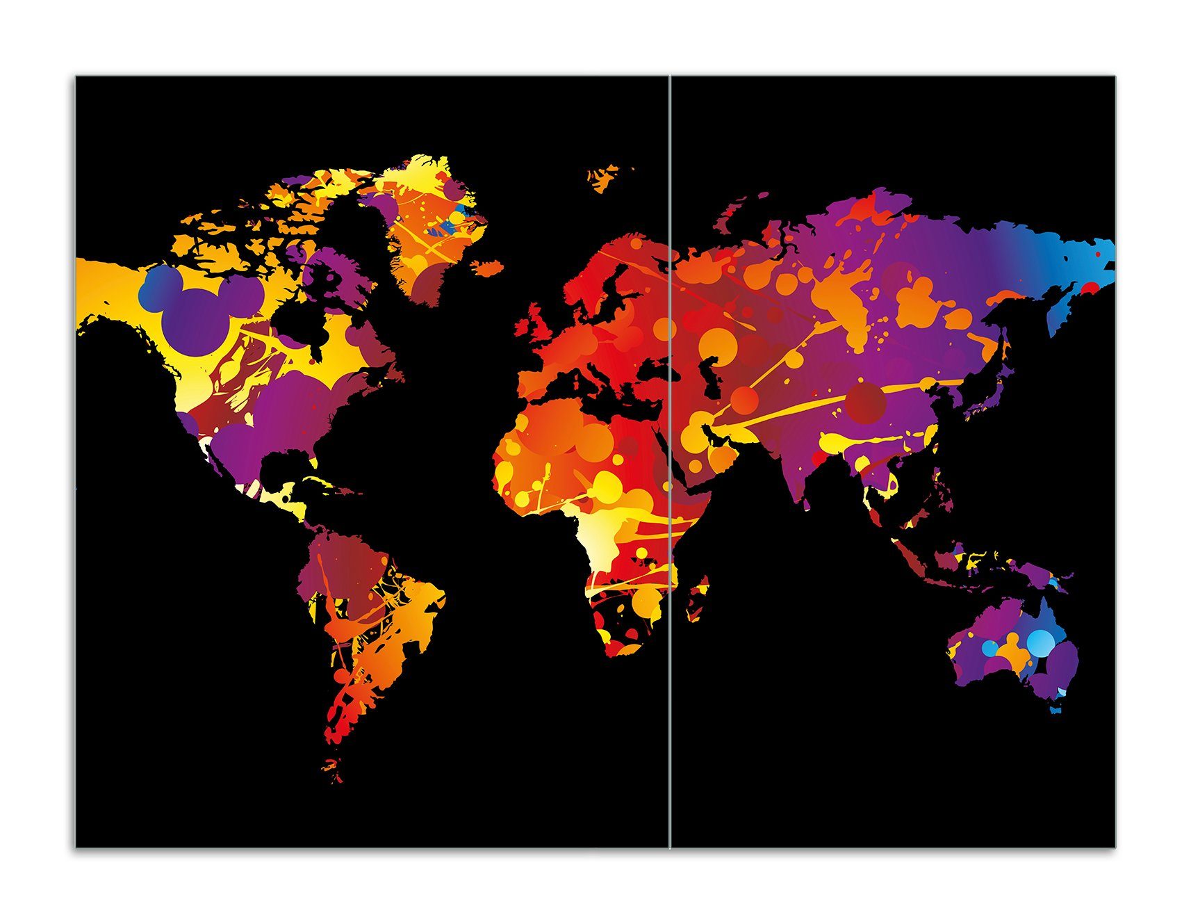 Wallario Herd-Abdeckplatte Weltkarte aus bunten Farbspritzern, ESG-Sicherheitsglas, (Glasplatte, 2 tlg., inkl. 5mm Noppen), verschiedene Größen