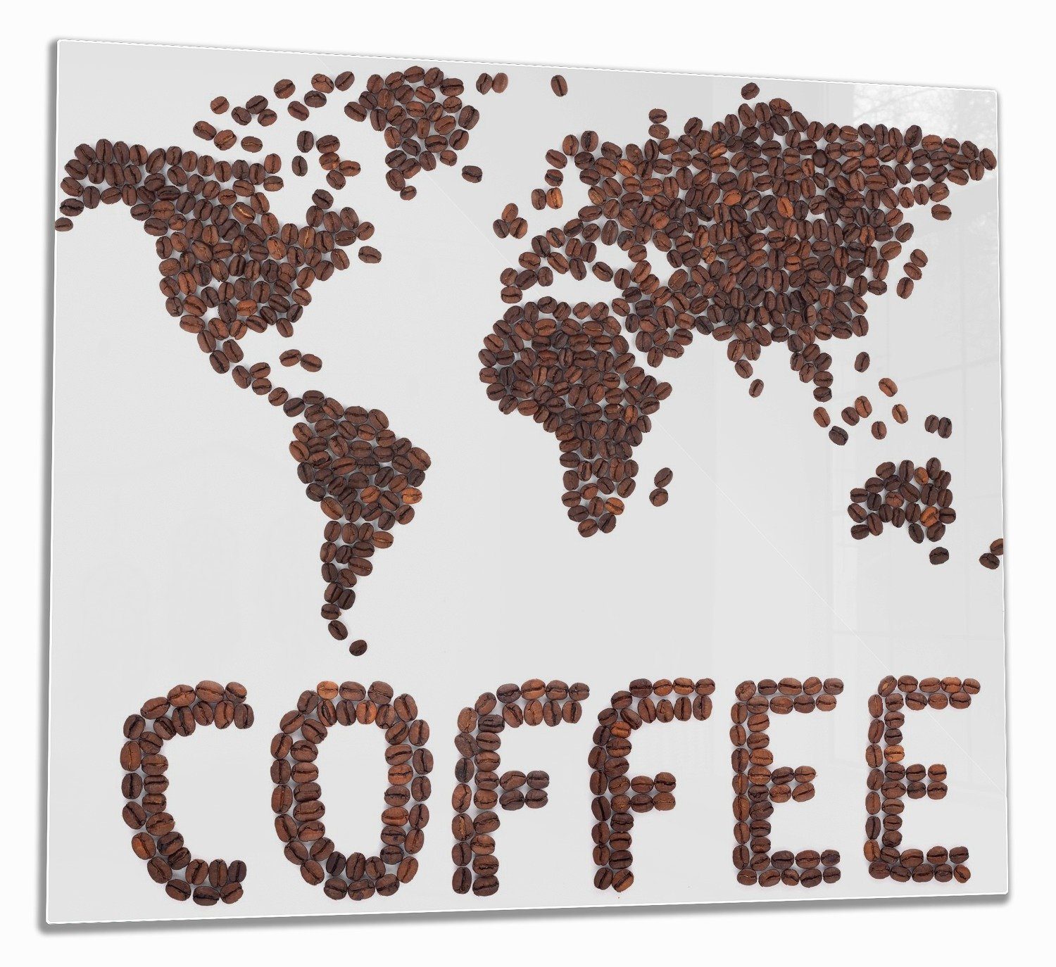 Herd-Abdeckplatte Weltkarte mit Schriftzug aus Kaffeebohnen