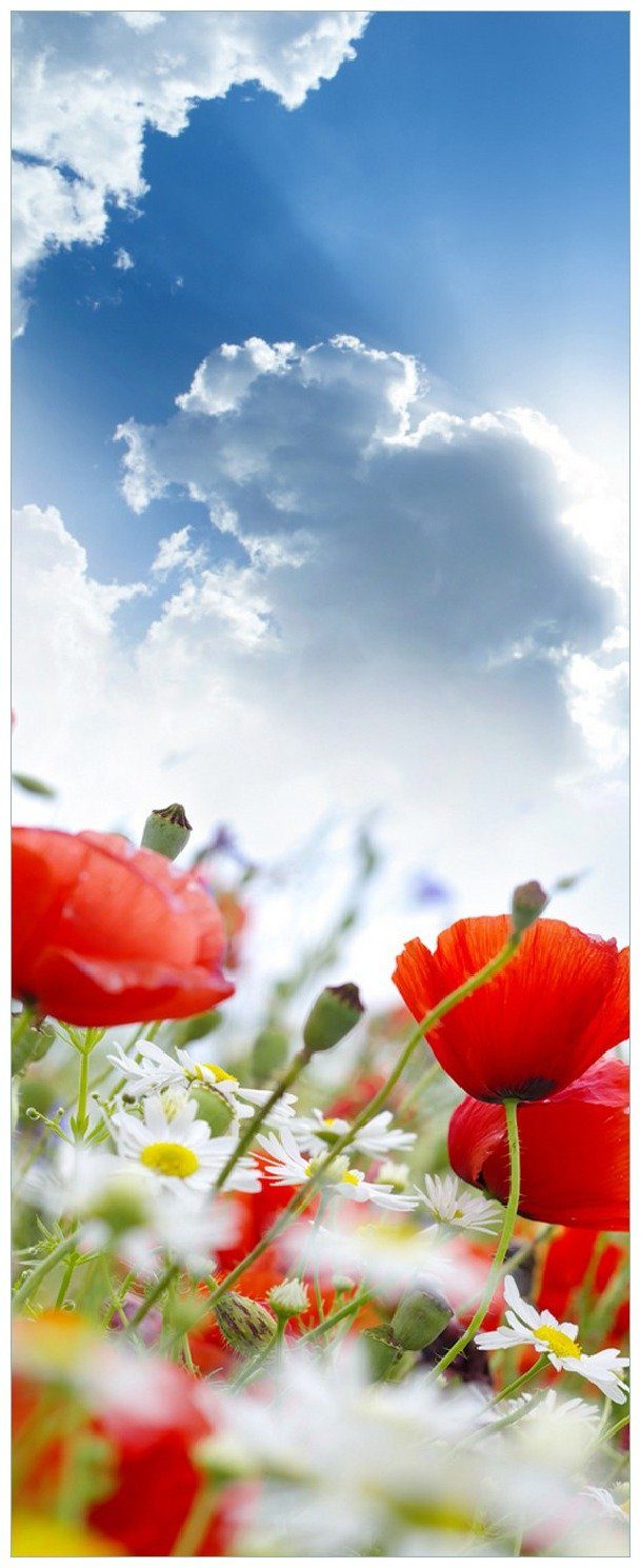 Wallario Memoboard Mohnblumen unter blauem Himmel