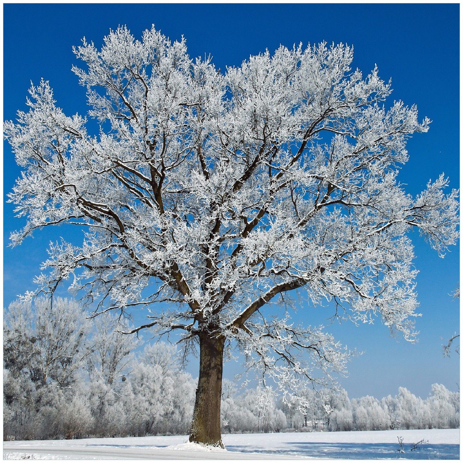 Wallario Memoboard Schneebedeckter Baum mit blauen Himmel