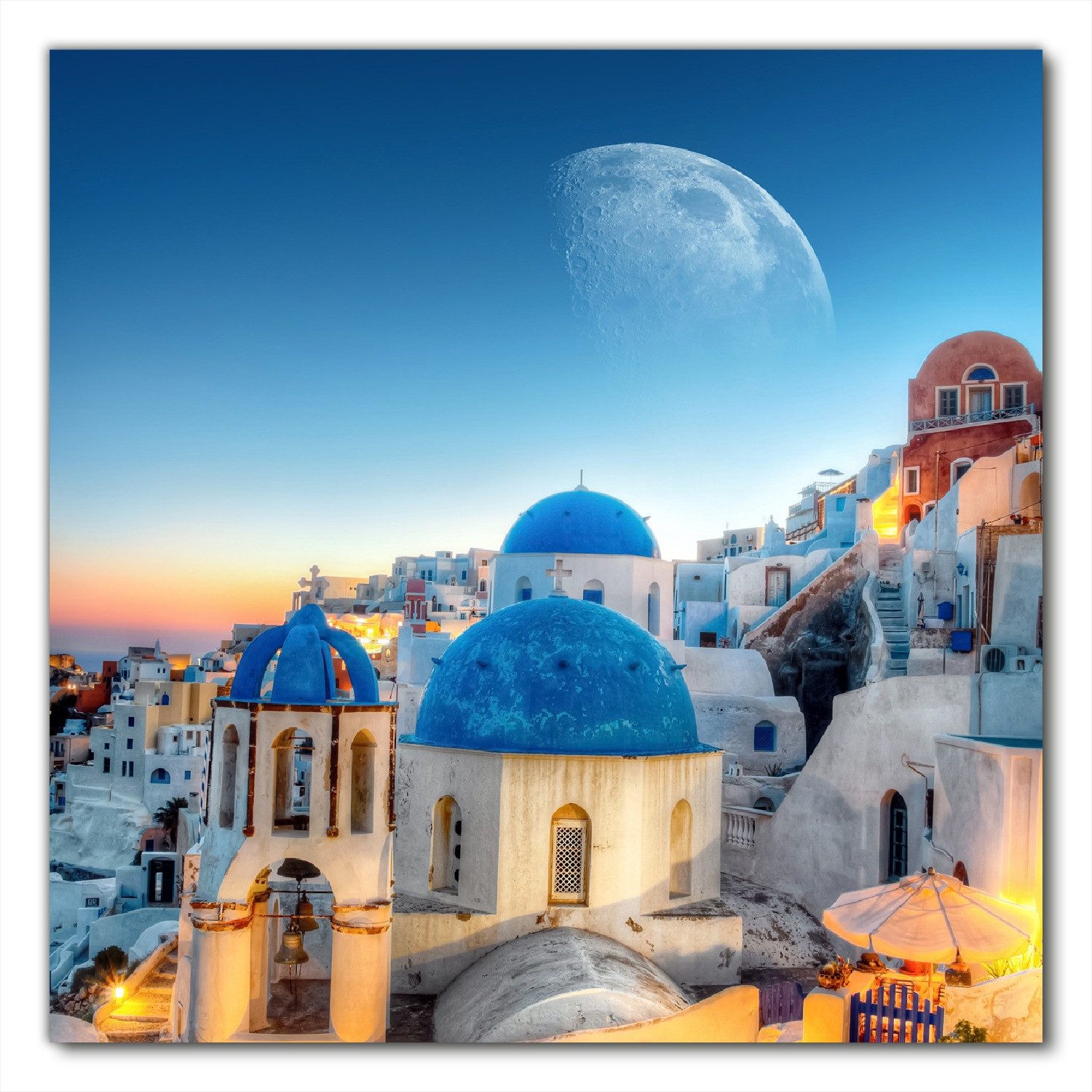 Die Kykladen-Insel ist bekannt für ihre weiß getünchten Häuser und Kirchen mit hübschen blauen Kuppeln, die sich sanft in die Klippen schmiegen. Von dort aus bietet sich ein Blick auf das Meer und bei untergehender Sonne gilt es als einer der besten Aussichtspunkte für das Lichtspektakel. Weiß-, Blau- und Gelbtöne sind beruhigend und mit dem großen Mond im Hintergrund entsteht ein eindrucksvolles Bild.