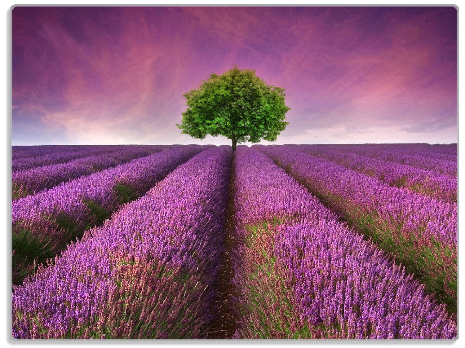 Bis zum Horizont zieht sich dieses fantastische Lavendelfeld und geht nahtlos in den ebenso farbenfrohen Himmel über. Als Zentraler Punkt und Anker für die Augen fungiert hier der einsame Baum im Zentrum.
