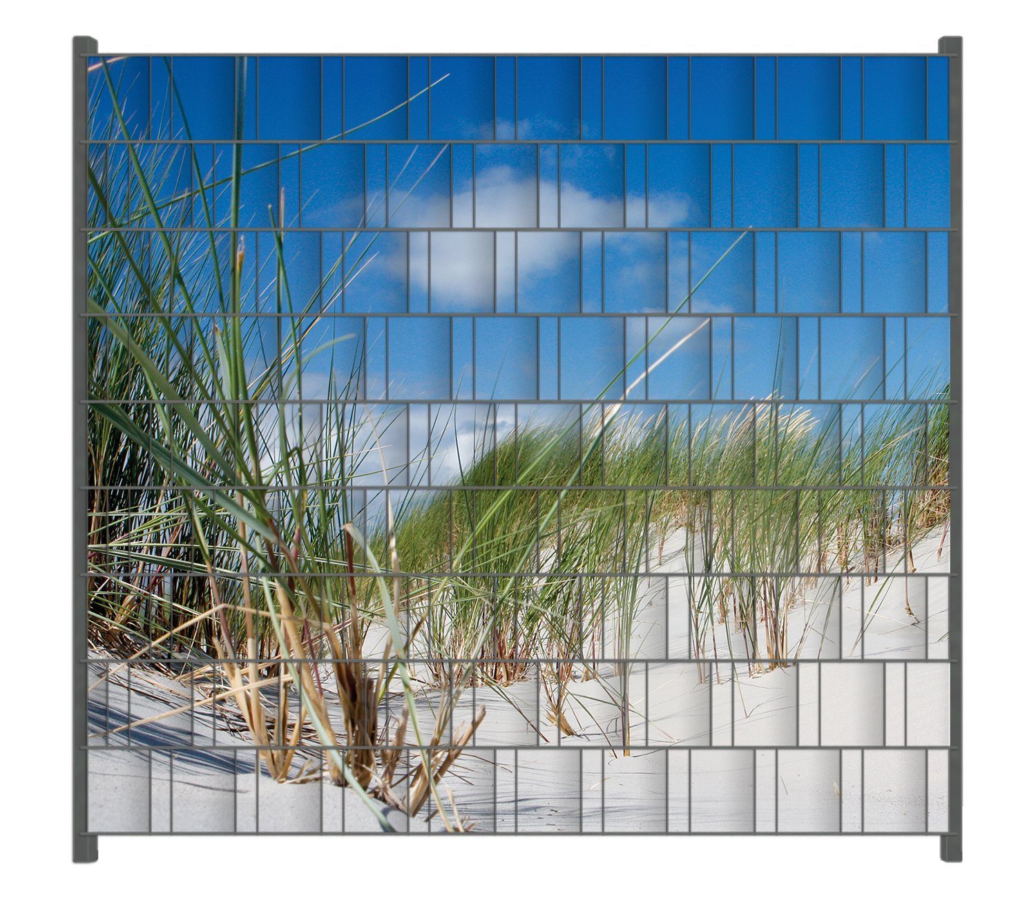 Ausgesuchte Motive unserer Kollektion werden auf blickdichtes Kunststoff-Bannermaterial gedruckt und bereits fertig für Sie zugeschnittenen. Die nummerierten Sichtschutzstreifen können einfach in den Zaun geflochten werden. Werkzeug wird für die Installation nicht benötigt. Die Höhe der einzelnen Bahnen beträgt 19,2 cm, womit diese für alle handelsüblichen Doppelstabmattenzäune geeignet sind. Bei Bedarf können Sie außerdem die Streifen problemlos mit einer Schere auf die von Ihnen benötigte Длина kürzen. Das Material ist wetterfest und für den Außeneinsatz geeignet.