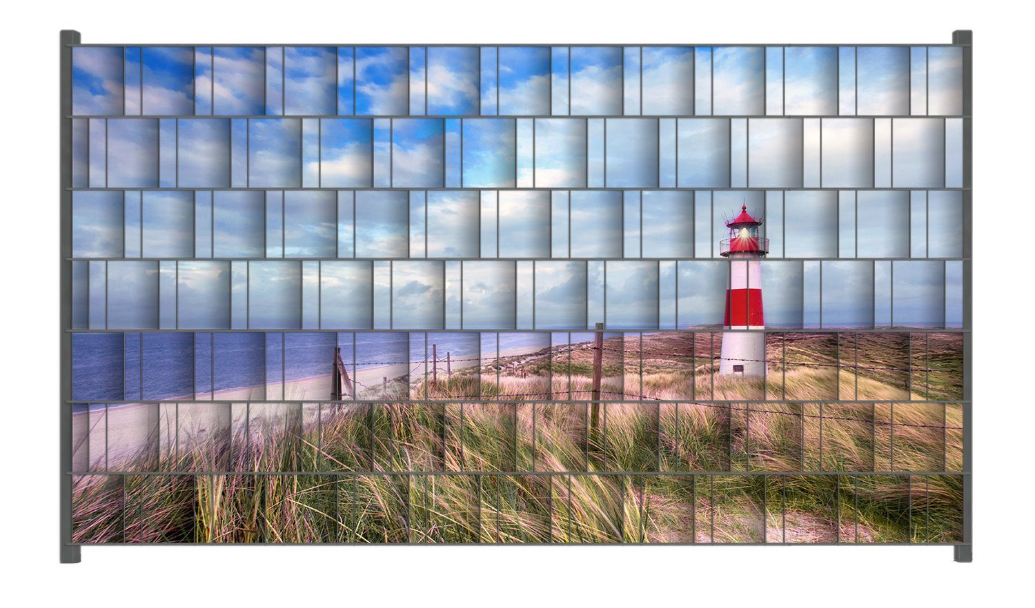 Wallario Sichtschutzstreifen Leuchtturm am Strand von Sylt, für Stabmattenzäune geeignet
