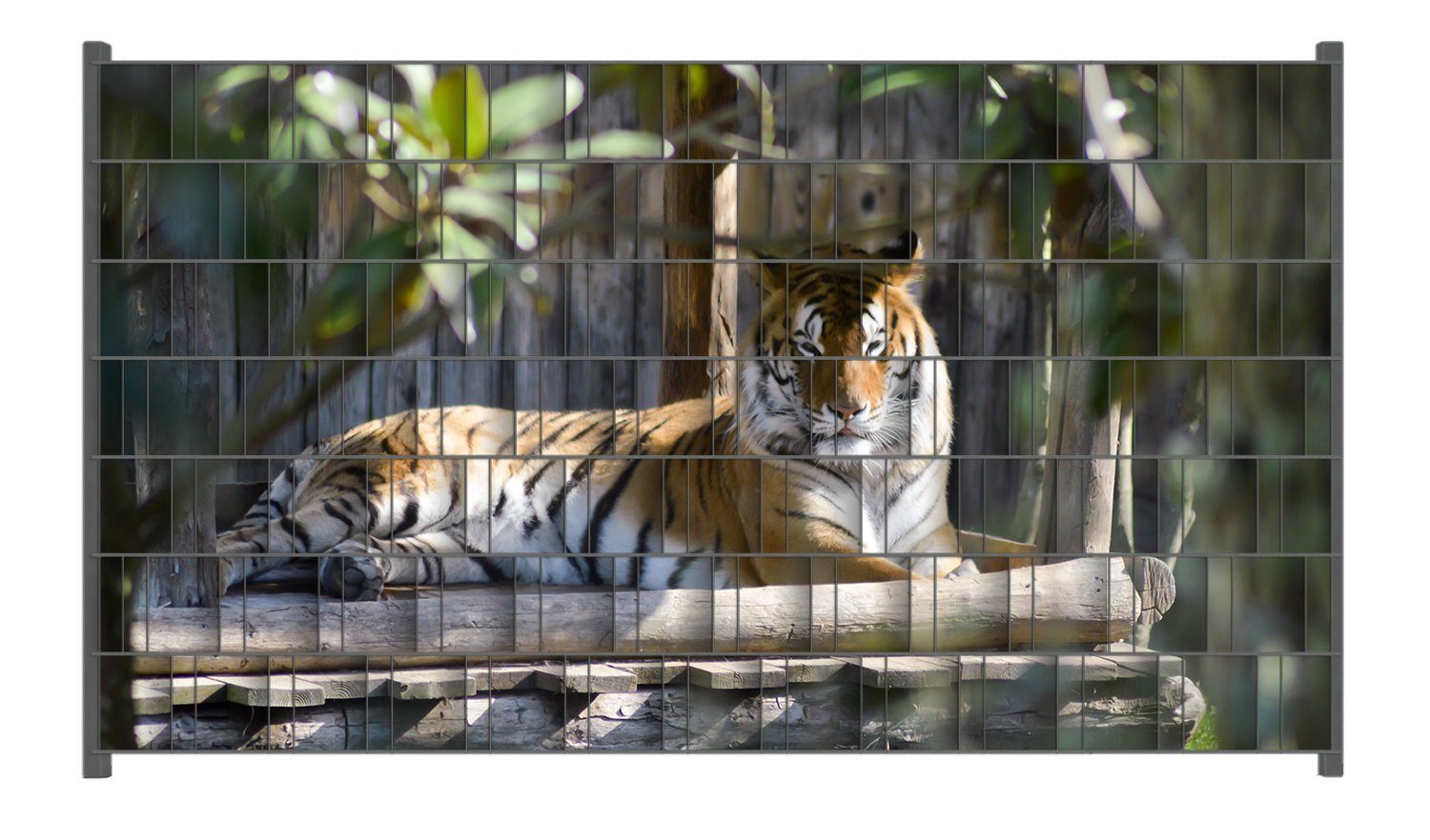 Ausgesuchte Motive unserer Kollektion werden auf blickdichtes Kunststoff-Bannermaterial gedruckt und bereits fertig für Sie zugeschnittenen. Die nummerierten Sichtschutzstreifen können einfach in den Zaun geflochten werden. Werkzeug wird für die Installation nicht benötigt. Die Höhe der einzelnen Bahnen beträgt 19,2 cm, womit diese für alle handelsüblichen Doppelstabmattenzäune geeignet sind. Bei Bedarf können Sie außerdem die Streifen problemlos mit einer Schere auf die von Ihnen benötigte Длина kürzen. Das Material ist wetterfest und für den Außeneinsatz geeignet.