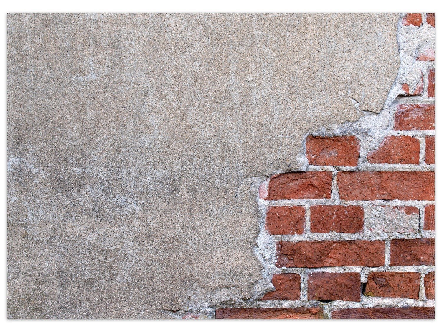 Holen Sie sich den urbanen Style ins Haus! Eine rote Ziegelsteinwand bestehend aus vielen unterschiedlich großen Ziegelsteinen wobei ein Teil dessen verputzt ist. Der graue Putz bildet einen wunderbaren Kontrast zu den roten Backsteinen.