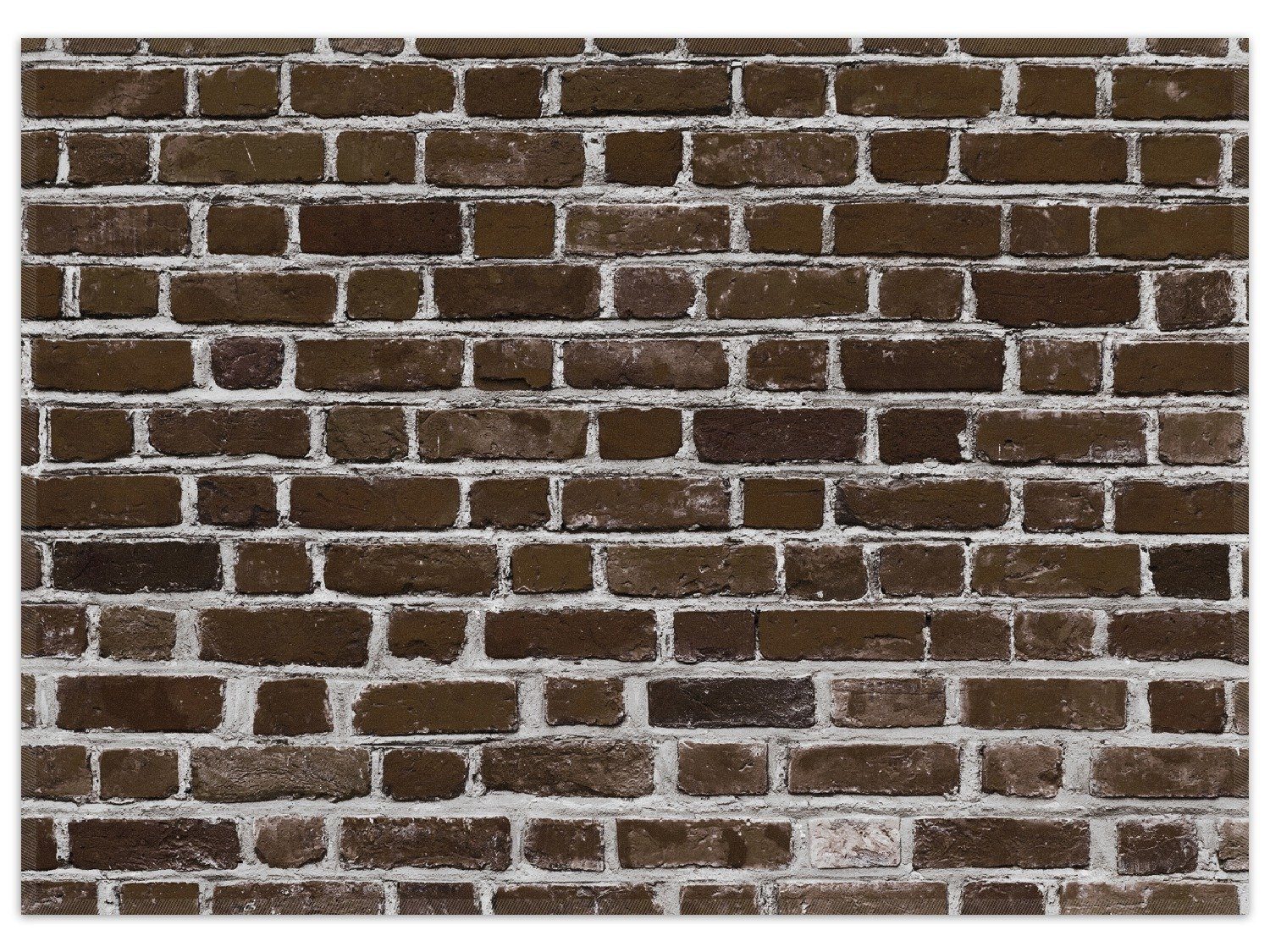 Diese braune Ziegelstein Wand ist grafisch sehr schön in Szene gesetzt und wirkt durch die scheinbar willkürlichen Farbtupfer auf eine künstlerische moderne Art interessant.
