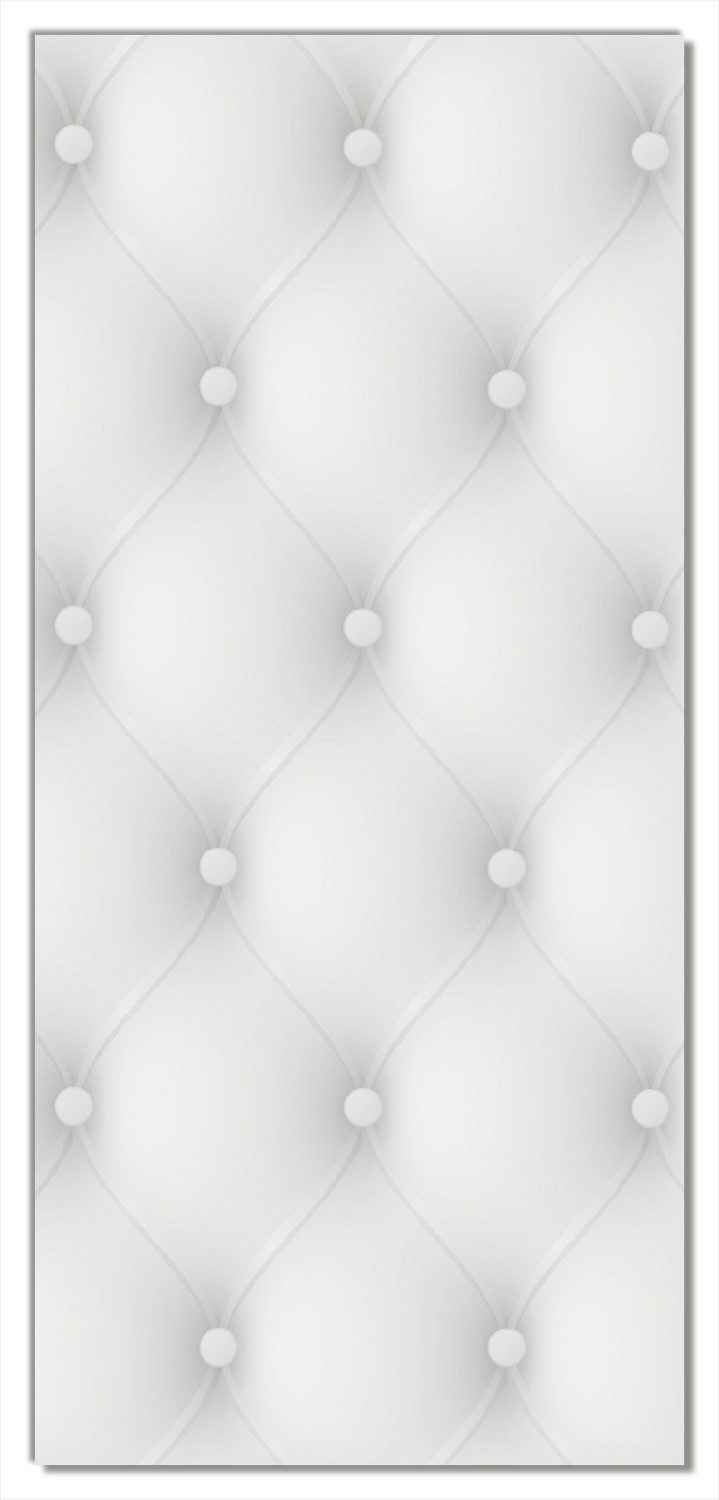 Einen Hauch von Lack und Leder versprüht dieses Motiv. Eine weiße Couch aus Leder in der Nahaufnahme. Das Polster ist mit Knöpfen versehen und wirkt dreidimensional.