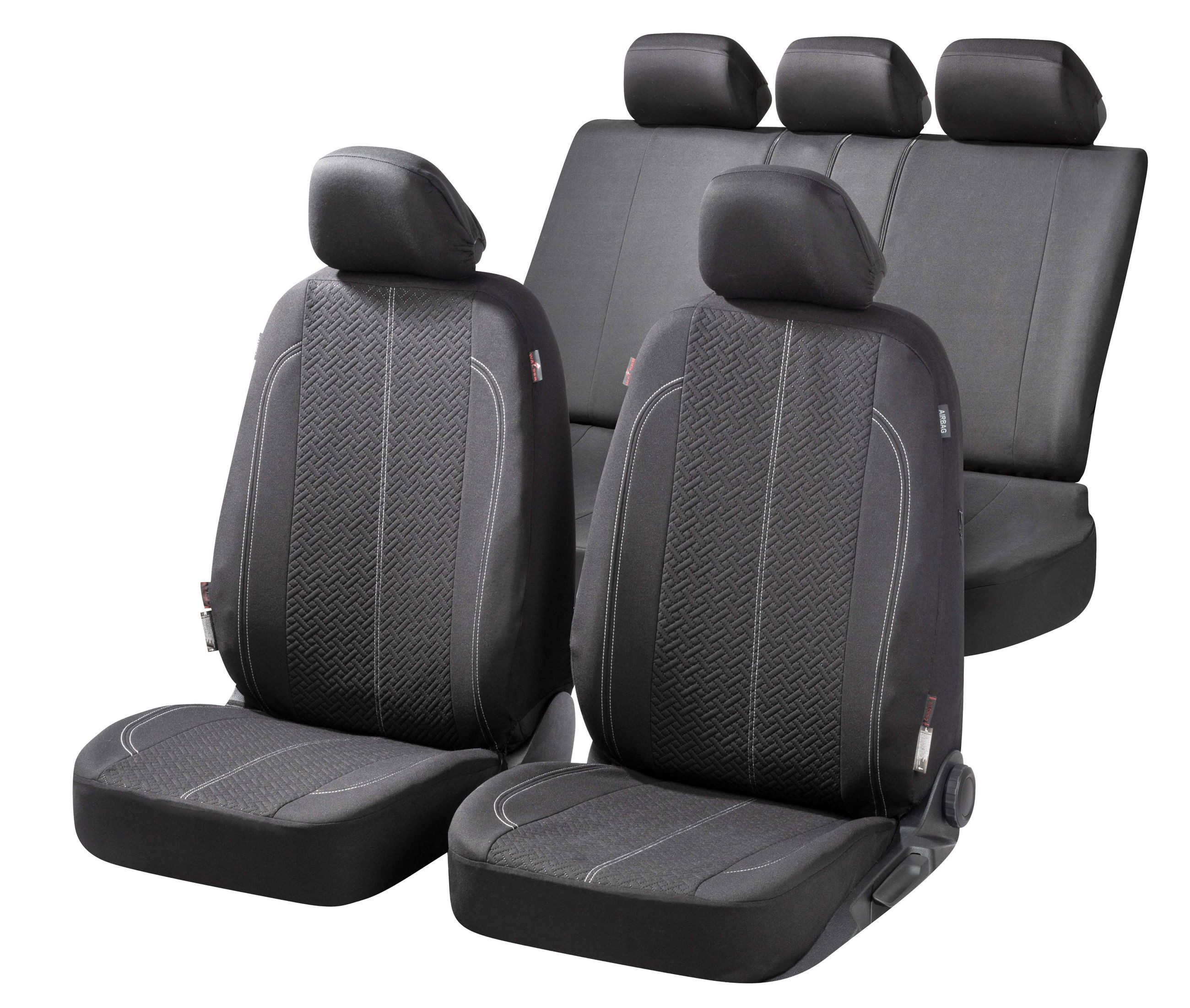 Lieferumfang | 2 Vordersitzbezüge 2tlg, 1 Rücksitzbezug 5tlg, 5 Kopfstützenbezüge |