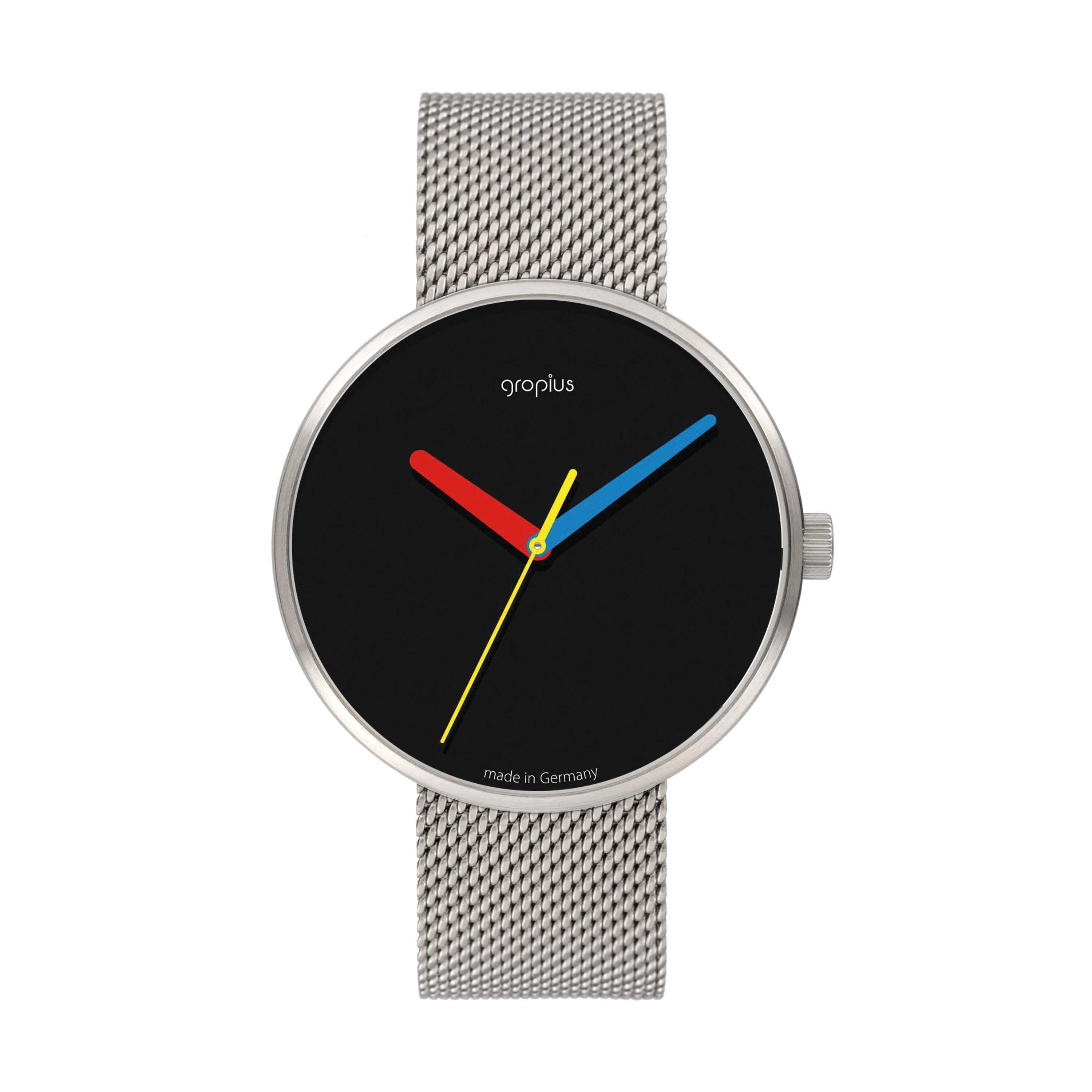 Die Uhren, die im Geiste des Bauhauses entworfen werden, verkörpern dessen Essenz mit ihrem klaren Design und hoher Funktionalität. Diese Zeitmesser sind mehr als bloße Gebrauchsgegenstände; sie sind stilvolle Accessoires, die das Erbe von Gropius und seine Philosophie fortführen. Sie vereinen Ästhetik und Funktionalität in einer Weise, die sowohl Liebhaber des klassischen Bauhaus-Stils als auch moderne Uhrenfreunde anspricht. Das Design der Uhren ahmt nicht den Gestaltungsstil von Gropius nach, sondern interpretiert ihn neu. Bauhaus steht allgemein für zeitloses Design, Einfachheit, vor allem aber auch für das Experimentelle. Das Design der Bauhaus Walter Gropius Uhren macht den neugierigen und spielerischen Aspekt am Bauhaus sichtbar. Poppige Farben, basierend auf den Grundfarben Blau, Gelb und Rot, farbige Zeiger sowie grafische Zifferblätter sind charakteristisch für die Uhrenkollektion.