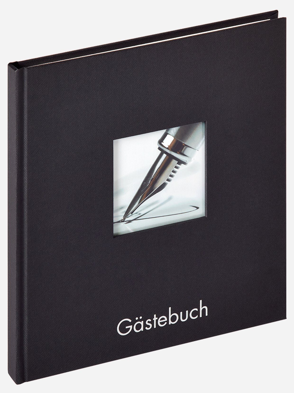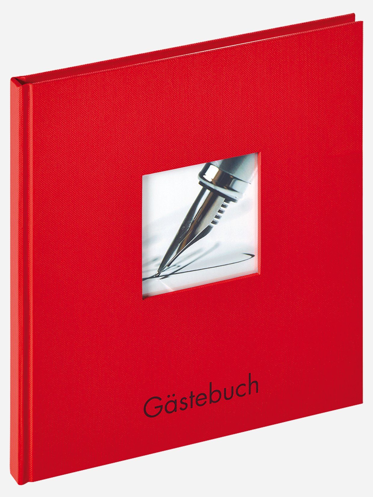 Gästebuch Fun Buchgebundene Gästebücher mit hochwertigem Papiereinband und Prägung. Die Version GB-206 besitzt zudem eine verdekcte Spirale. Die Bücher sind mit dem Schriftzug 'Gästebuch' versehen, bei Farbe schwarz und blau mit einer Silberprägung, bei Farbe creme und rot mit einer schwarzen Prägung. Die Bücher der Version GB-205 sind durch eine Formatausstanzung der Vorderseite für ein Foto veredlet. Die Gästebücher Fun haben 72 weisse Seiten. Verpackung: geschrumpfte Folie