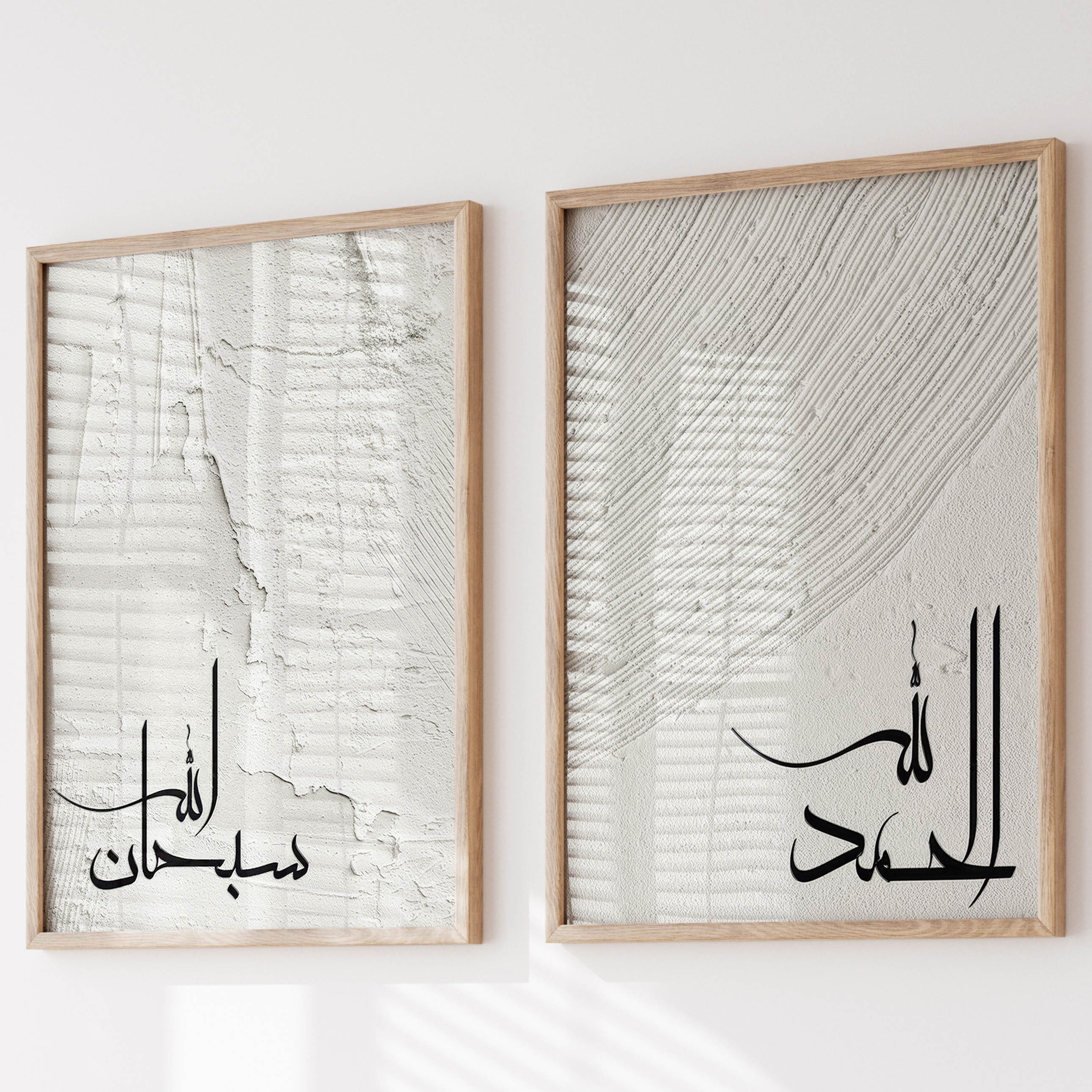 Islamisches 2er-Poster-Set: Enthält Bismillah & Alhamdulillah – perfekt für ein stilvolles und bedeutungsvolles Ambiente.
