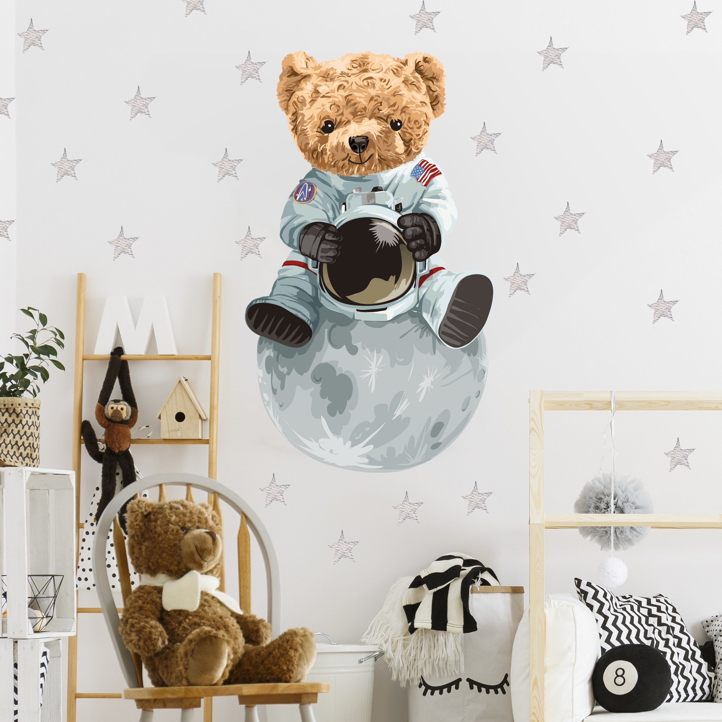 LIEFERUMFANG: Ein Wandtattoo mit dem Bären auf dem Mond Astronaut, in der Wunschgröße (Breite x Höhe) inkl. Anleitung zur kinderleichten Anbringung.