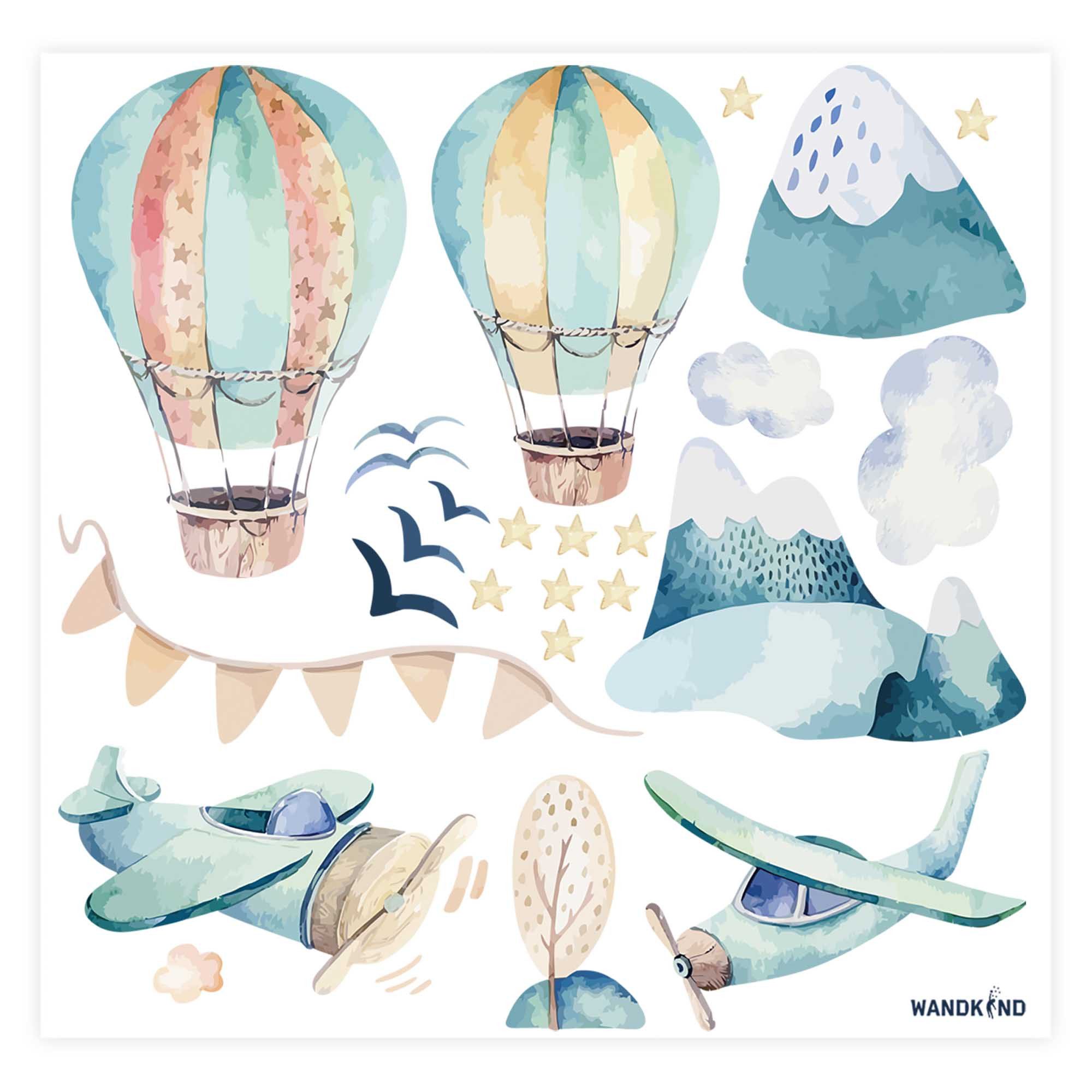 FLUGZEUG & HEISSLUFTBALLON Set Wandtattoo Aufkleber - Hervorragende Markenqualität von WANDKIND