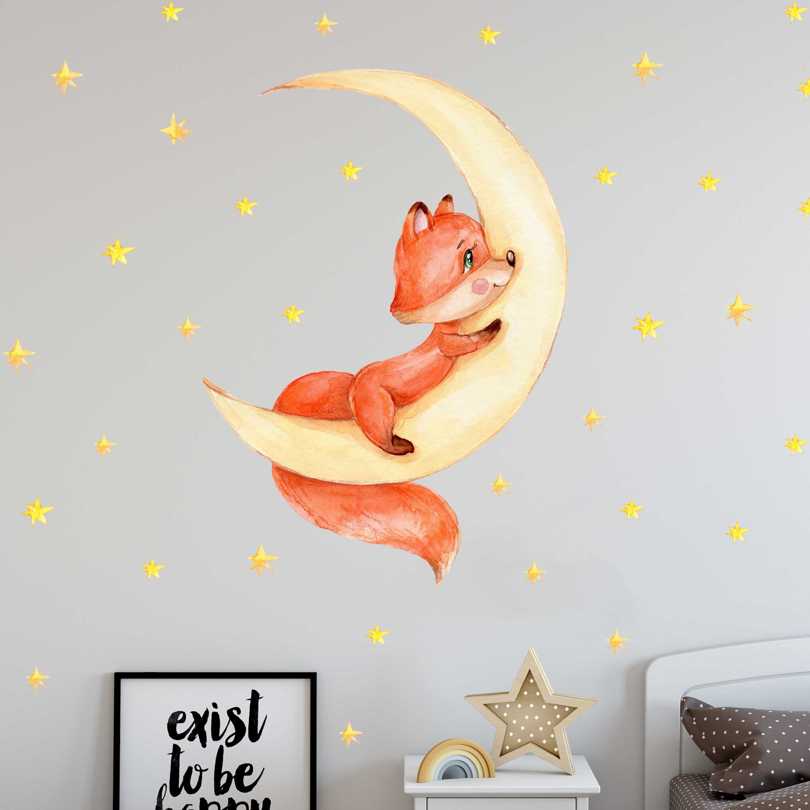 LIEFERUMFANG: Ein Wandtattoo mit Fuchs und Mond in der Wunschgröße (Breite x Höhe) inkl. Anleitung zur kinderleichten Anbringung.