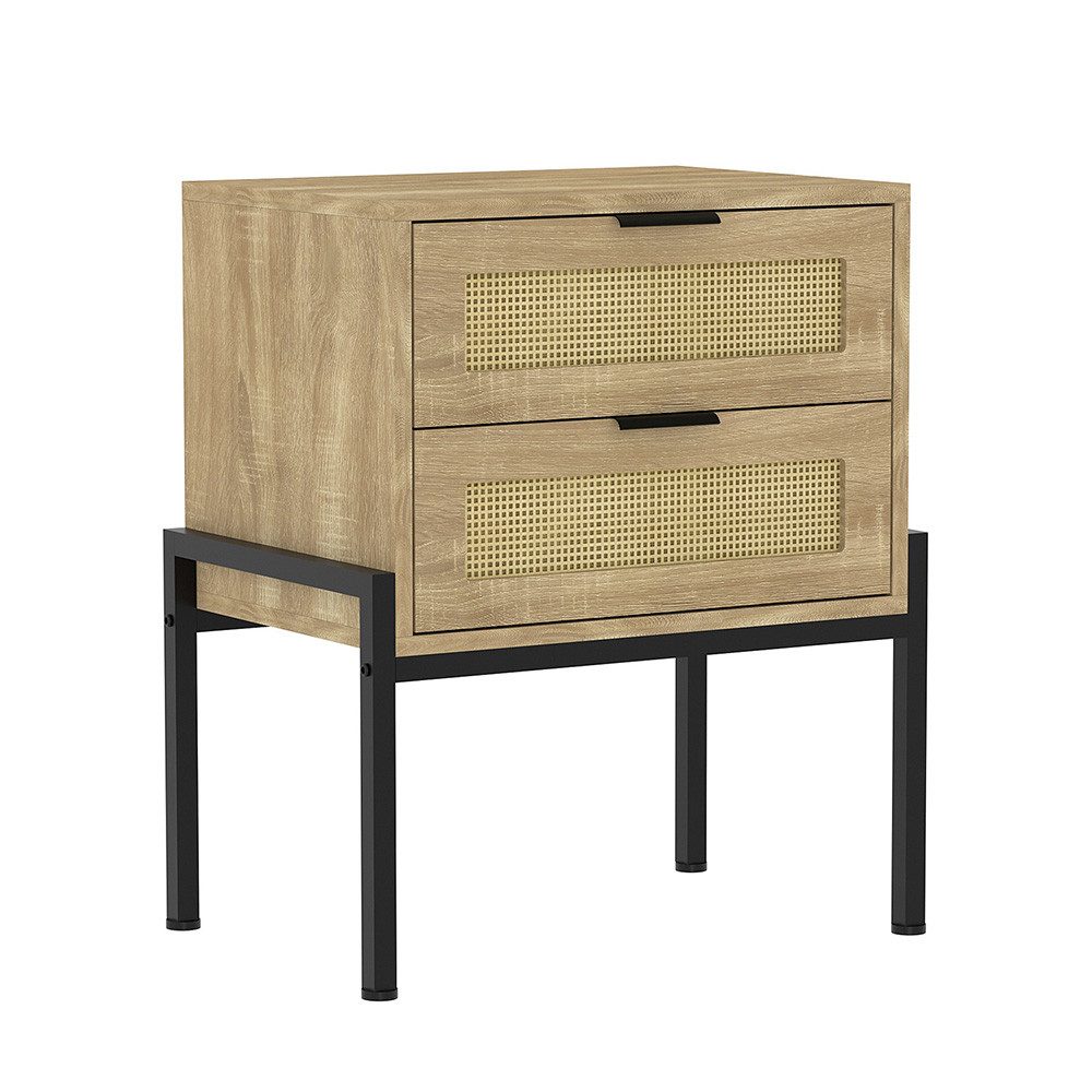 Der Nachttisch ist aus MDF+Rattan gefertigt, atmungsaktiv und schön. Metallhockerbeine mit quadratischer Struktur, stabil und nicht schwankend.