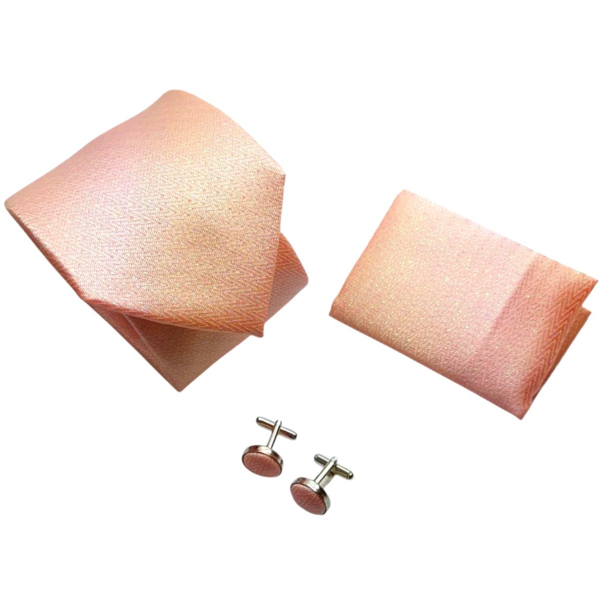 Perfekt aufeinander abgestimmtes Trio aus edler Seidenkrawatte, passendem Einstecktuch und Manschettenknöpfen für einen herausragenden und geschmackvollen Look.
