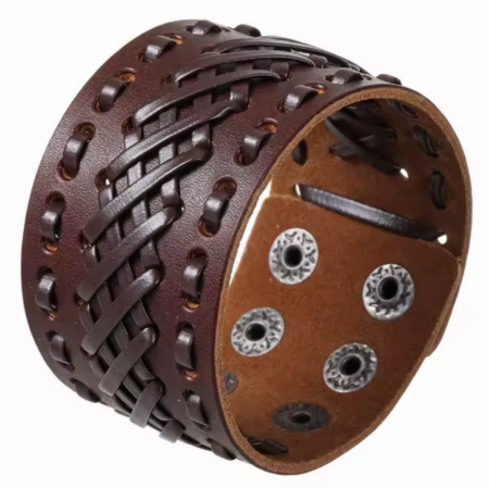 Dieses stilvolle Lederarmband überzeugt durch sein robustes, maskulines Design im Vintage-Look. Gefertigt aus hochwertigem Leder in warmem Braunton, vereint es Lässigkeit mit Ausdrucksstärke. Dank des praktischen Druckknopfverschlusses ist das Armband individuell in drei Длинаn (ca. 18 cm, 19,5 cm und 21 cm) verstellbar und bietet damit optimalen Tragekomfort. Mit seiner markanten Breite von ca. 4,0 cm setzt es ein modisches Statement und rundet jedes Outfit – ob casual oder rockig – perfekt ab.