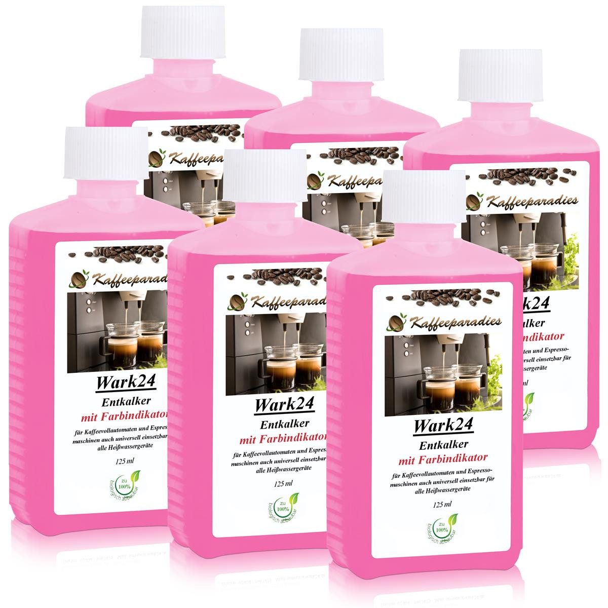 Es ist wieder so weit: Die Kaffeemaschine, der Wasserkocher oder ein anderes Heißwassergerät in Ihrem Haushalt ist verkalkt. Doch wie entkalken Sie das Gerät nun möglichst zuverlässig? Und wie stellen Sie fest, ob der Entkalker überhaupt noch wirkt? Wir haben mit dem Wark24 Flüssig Entkalker mit Farbindikator die passende Lösung für Sie parat. Neben seiner exzellenten Entkalkungsfunktion glänzt das Produkt mit einem Farbindikator, der Ihnen anzeigt, wie effizient die Entkalkung abläuft. Folglich schont der Entkalker Ihren Geldbeutel und spart Ihre Zeit. Durch seine vollständig biologische Abbaubarkeit ist er zudem das ideale Mittel für ein umweltbewusstes Handeln.