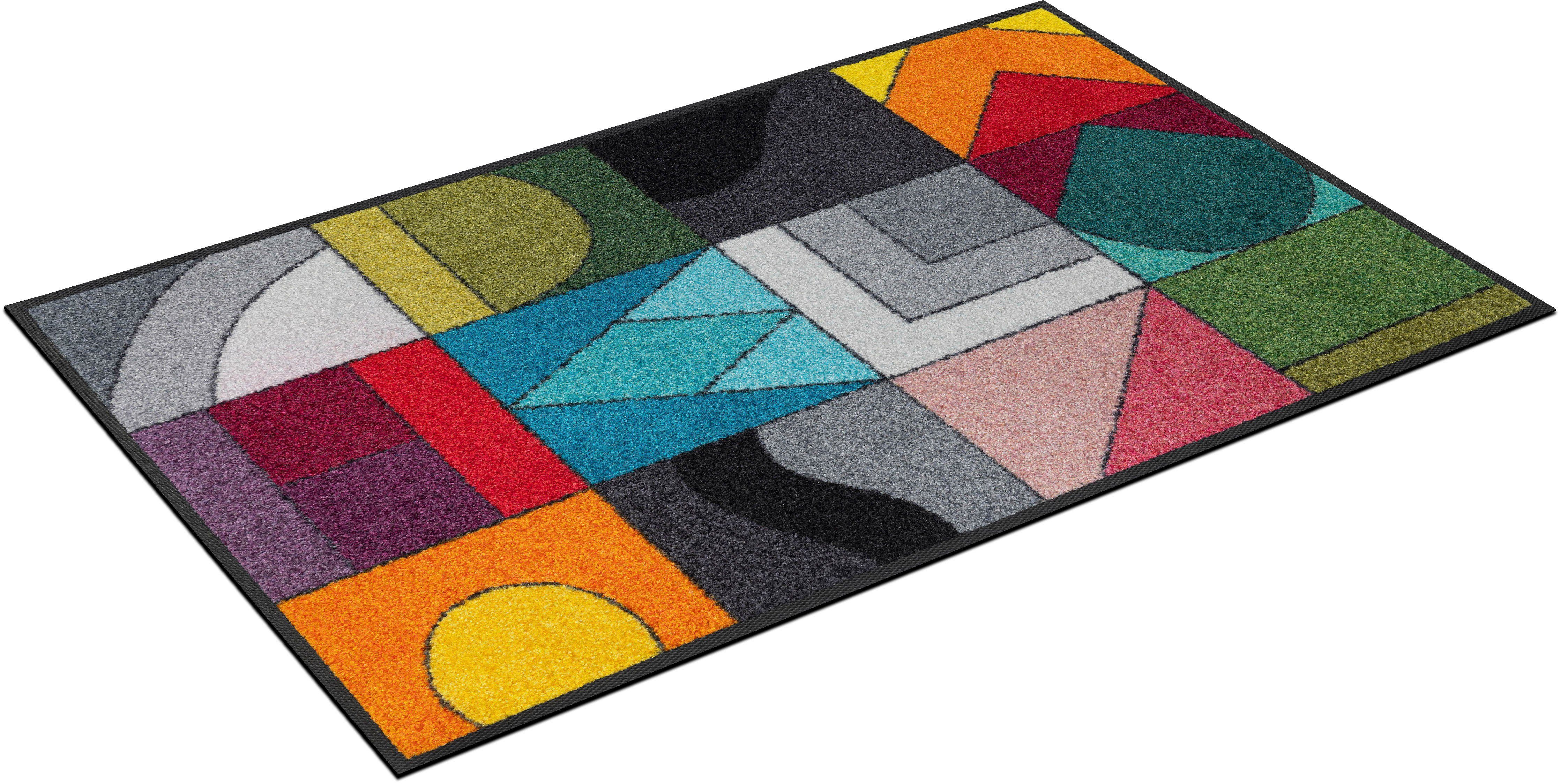 Das Design Momix ist perfekt geeignet für alle, die Farben lieben ohne dabei laut und aufdringlich zu sein. Die Multi-Farbigkeit lässt sich wunderbar mit vielen unterschiedlichen Einrichtungsfarben kombinieren und auch das geometrische Design ist sehr vielseitig! Individuell einsetzbar als klassische Fußmatte vor dem Eingang, als Eyecatcher in Flur oder Garderobe, aber auch auf Balkonen, Terrassen und in Wintergärten sind die „wash+dry“-Matten immer ein optisches Highlight und nützlicher Helfer zugleich. Neben dem dekorativen Aspekt kommt bei allen wash+dry Matten die Funktion nicht zu kurz. Zuverlässig nimmt der flache, dichte Flor aus Polyamid Schmutz und Feuchtigkeit auch in hoch frequentierten Bereichen auf. Die rutschhemmende Rückenbeschichtung aus Nitrilgummi sorgt für sicheren Stand. Aufgrund der Farbechtheit und Formstabilität kann die Matte einfach in der Waschmaschine (bei maximal 60 Grad) und auch im Trockner (Programm: Mischgewebe) gereinigt werden, um die jahrelange Freude an der Matte zu gewährleisten. Pflegen Sie so Ihre wash+dry Fußmatte 3 bis 4 Mal im Jahr (bei starker Belastung auch häufiger). Für die tägliche Reinigung ist der Teppich leicht zu saugen und auch für den Saugroboter geeignet, da der Flor sehr flach ist. Die Fußmatte ist 100% PVC-frei. Bei PVC-Böden, Linoleum Böden und frisch geölten Holzböden kann es durch eine Wechselwirkung mit gummibeschichteten Matten zu einer Farbveränderung der Oberfläche kommen. Für alle Produkte behalten wir uns eine produktionsbedingte Toleranz in der Размер von +/- 3% vor. Farbabweichungen können auftreten. Momix gibt es in drei Größen 50/75cm, 75/120cm, 60/180cm.