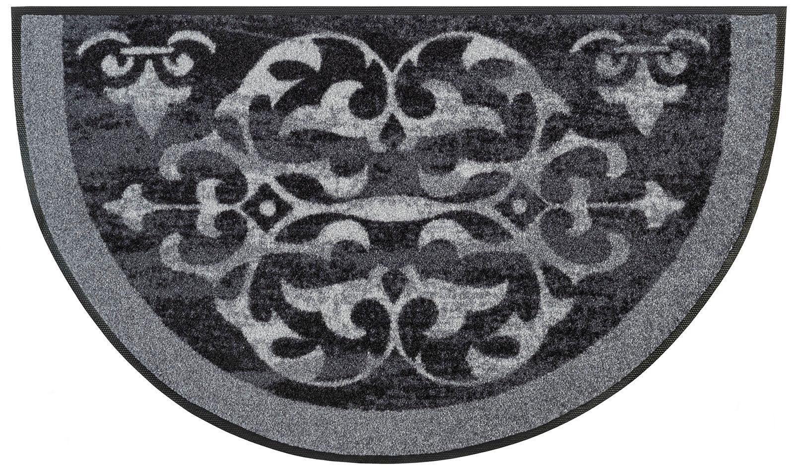 Die Matte „Round Ornaments“ aus der neuen Serie „wash+dry Design Special Shape“ ist eine Fußmatte mit Rand in Sonderform und besonderen Rundungen, in tollen Farben und edlen Designs. Individuell einsetzbar als klassische Fußmatte vor dem Eingang, als Eyecatcher in Flur oder Garderobe, aber auch auf Balkonen, Terrassen und in Wintergärten sind „wash+dry“-Matten ein optisches Highlight und nützlicher Helfer zugleich. Neben dem dekorativen Aspekt kommt bei allen wash+dry Matten und Läufern die Funktion nicht zu kurz. Zuverlässig nimmt der flache, dichte Flor aus Polyamid Schmutz und Feuchtigkeit auch in hoch frequentierten Bereichen auf. Die rutschhemmende Rückenbeschichtung aus Nitrilgummi sorgt für sicheren Stand. Aufgrund von Farbechtheit und Formstabilität kann die Matte einfach in der Waschmaschine und auch im Trockner gereinigt werden, um die jahrelange Freude an der Matte zu gewährleisten. Der Teppich ist 100% PVC-frei.