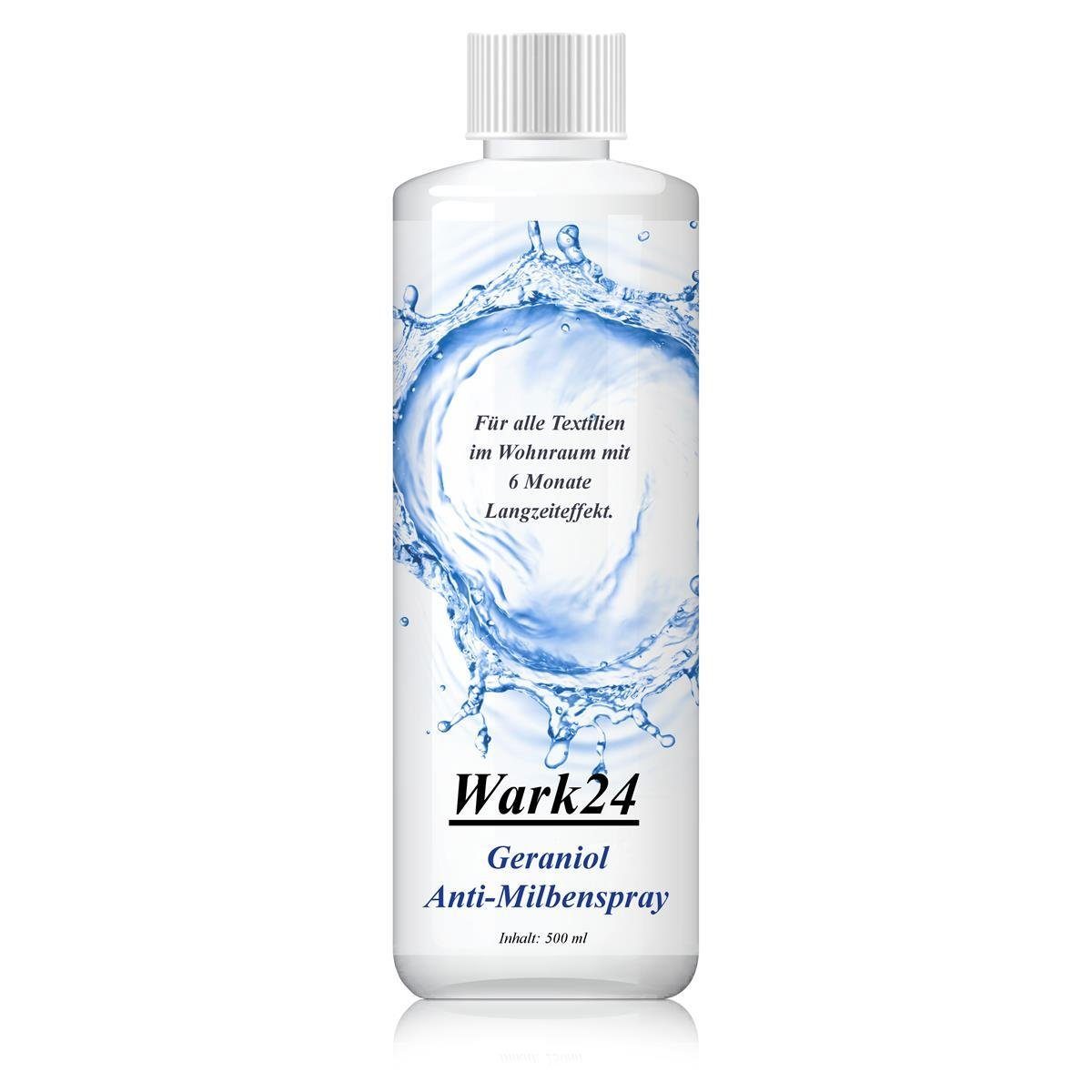Wark24 Geraniol gegen Milben - Anti-Milben-Spray mit LangzeiteffektDas Spray „Geraniol gegen Milben“ beseitigt die Ursachen allergischer Reaktionen gezielt - und sorgt auf diese Weise für einen gesunden und erholsamen Schlaf. Hausstaubmilben bleiben häufig unbemerkt, denn mit einer Размер von nur 0,1 bis 0,5 Millimetern sind sie für das bloße Auge nicht sichtbar. An sich sind Milben völlig harmlos, da sie dem Menschen nicht schaden und auch keine Krankheiten übertragen. Jedoch ist ihr Kot eines der häufigsten Всеrgene in Innenräumen - allein in Deutschland leiden mehr als vier Millionen Menschen an einer Hausstauballergie. Nicht nur auf Matratzen sind Hausstaubmilben zu finden, sondern auch auf anderen textilen Oberflächen wie Kissen, Bettzeug, Sofas und Teppichen. Ob Milben auftreten, ist keine Frage der Hygiene. Jedoch bedarf es einer gezielten Behandlung mit einem speziell dafür vorgesehenen Mittel, wie diesem „Geraniol gegen Milben“-Spray von Wark24.