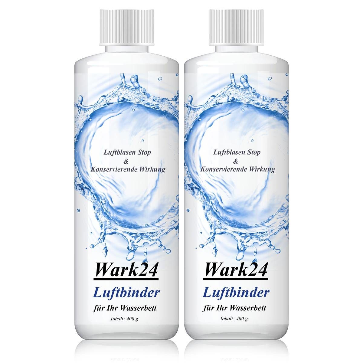 Wark24 Luftbinder Bubble Stop für geräuschlosen Schlaf im Wasserbett!Der Wark24 Luftbinder Bubble Stop ist die ideale Lösung, um Luftblasen im Wasserbett effektiv zu beseitigen. Vor der Anwendung einfach kräftig schütteln, damit sich die Wirkstoffe optimal im Wasserbettkern verteilen. Dann den Wark24 Luftbinder Bubble Stop in den Einfüllstutzen füllen und einige Zeit warten bis sich dieser Entfernen Sie nun;alle Textilien vom Bett und ziehen Sie;den Einfüllstutzen heraus. Drücken Sie;die Luft langsam Richtung Ventil oder verwenden Sie eine Entlüftungspumpe gemäß den Anweisungen des Herstellers. Mit dem Wark24 Luftbinder Bubble Stop genießt du wieder einen ruhigen und erholsamen Schlaf ohne störende Luftblasen im Wasserbett!