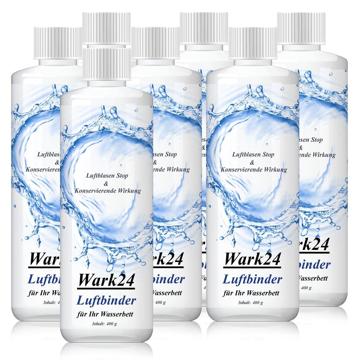 Wark24 Luftbinder Bubble Stop für geräuschlosen Schlaf im Wasserbett!Der Wark24 Luftbinder Bubble Stop ist die ideale Lösung, um Luftblasen im Wasserbett effektiv zu beseitigen. Vor der Anwendung einfach kräftig schütteln, damit sich die Wirkstoffe optimal im Wasserbettkern verteilen. Dann den Wark24 Luftbinder Bubble Stop in den Einfüllstutzen füllen und einige Zeit warten bis sich dieser Entfernen Sie nun;alle Textilien vom Bett und ziehen Sie;den Einfüllstutzen heraus. Drücken Sie;die Luft langsam Richtung Ventil oder verwenden Sie eine Entlüftungspumpe gemäß den Anweisungen des Herstellers. Mit dem Wark24 Luftbinder Bubble Stop genießt du wieder einen ruhigen und erholsamen Schlaf ohne störende Luftblasen im Wasserbett!