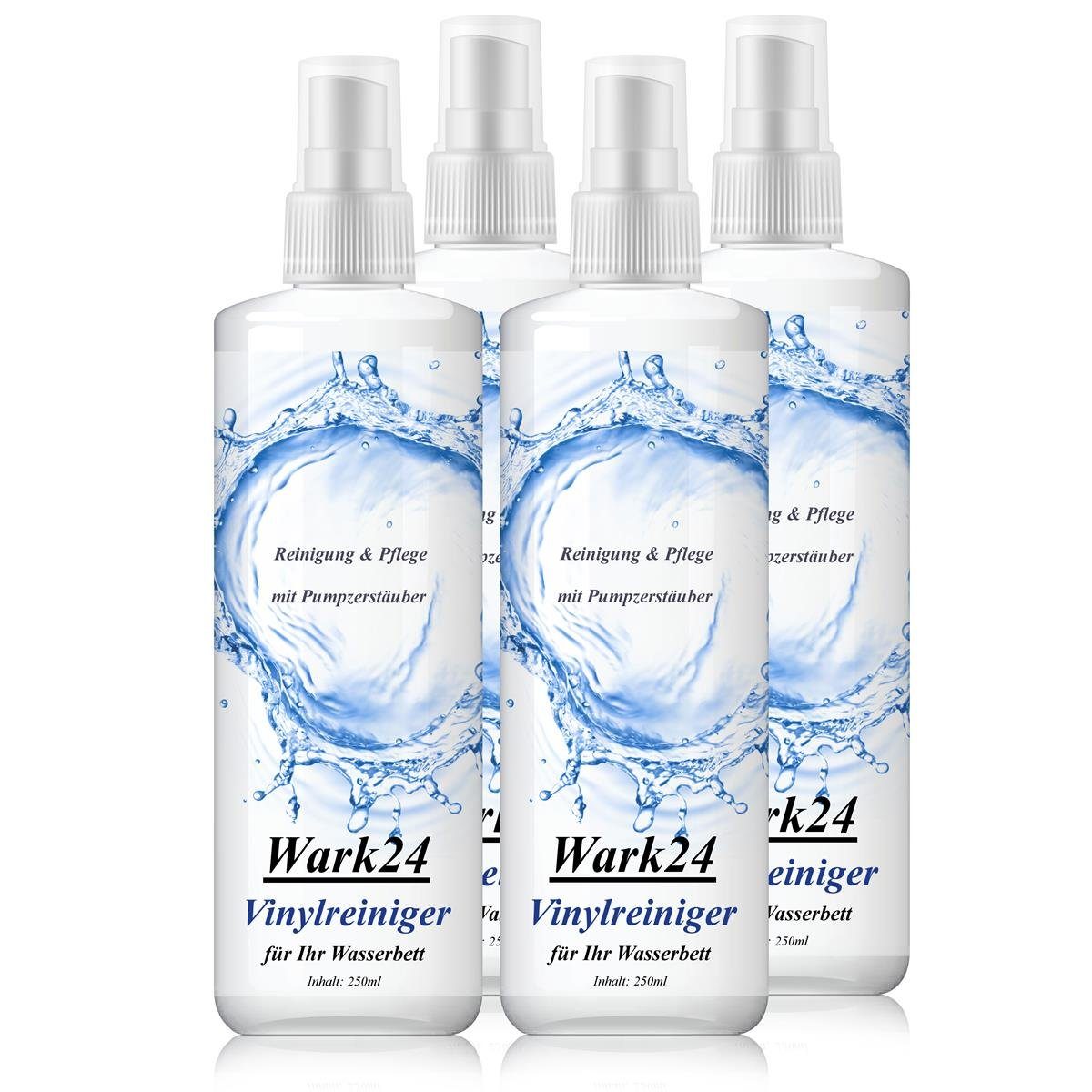 Die handliche 250ml Flasche mit Pumpzerstäuber ermöglicht eine einfache Anwendung, ohne lästiges Umfüllen oder Dosieren. Egal welche Art von Wasserbettmatratze du besitzt - der Wark24 Vinylreiniger ist für alle Modelle geeignet.