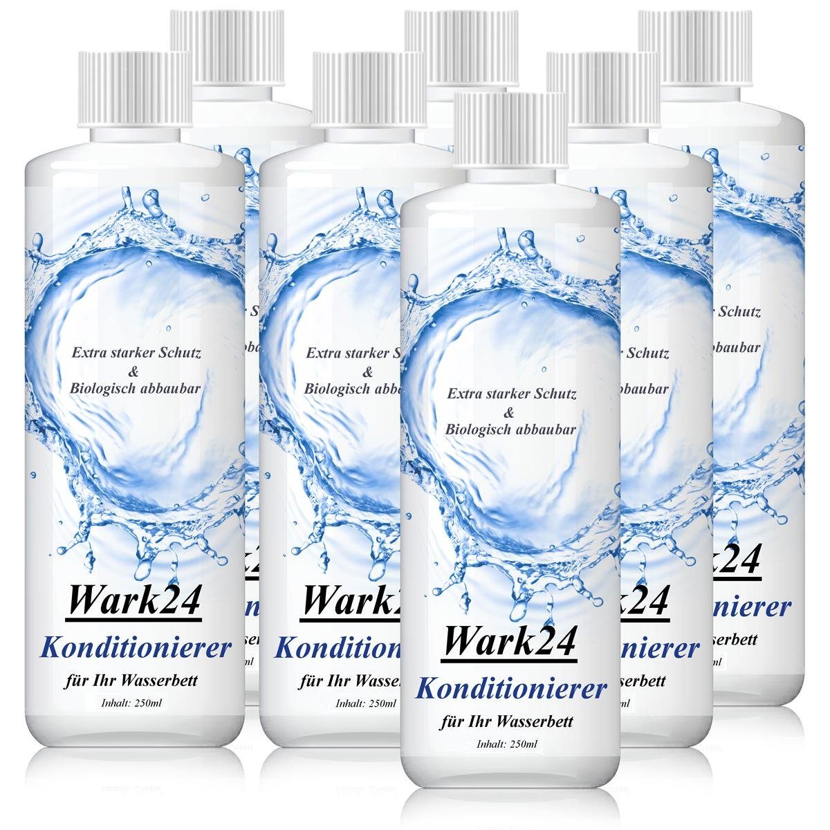 Fakten rund um den richtigen Einsatz des PflegemittelsWenn Sie sich nun fragen, wie Sie den Konditionierer von Wark24 am besten einsetzen, um einen bestmöglichen Effekt zu erzielen, geben wir Ihnen gerne ein paar praktische Tipps mit auf den Weg: Achten Sie zum einen darauf, dass Sie die Flasche vor dem Öffnung kräftig schütteln, damit sich die Zusätze vermischen und im Anschluss überall gleich intensiv wirken können. Das Produkt ist zudem für alle Arten von Wasserbetten ausgelegt und beinhaltet 1.000 Milliliter. Die Füllmenge reicht für Matratzen mit einem Volumen von 350 Litern, was in der Regel einer Seite eines Doppelbettes entspricht.