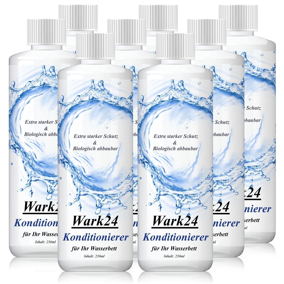 Fakten rund um den richtigen Einsatz des PflegemittelsWenn Sie sich nun fragen, wie Sie den Konditionierer von Wark24 am besten einsetzen, um einen bestmöglichen Effekt zu erzielen, geben wir Ihnen gerne ein paar praktische Tipps mit auf den Weg: Achten Sie zum einen darauf, dass Sie die Flasche vor dem Öffnung kräftig schütteln, damit sich die Zusätze vermischen und im Anschluss überall gleich intensiv wirken können. Das Produkt ist zudem für alle Arten von Wasserbetten ausgelegt und beinhaltet 1.000 Milliliter. Die Füllmenge reicht für Matratzen mit einem Volumen von 350 Litern, was in der Regel einer Seite eines Doppelbettes entspricht.
