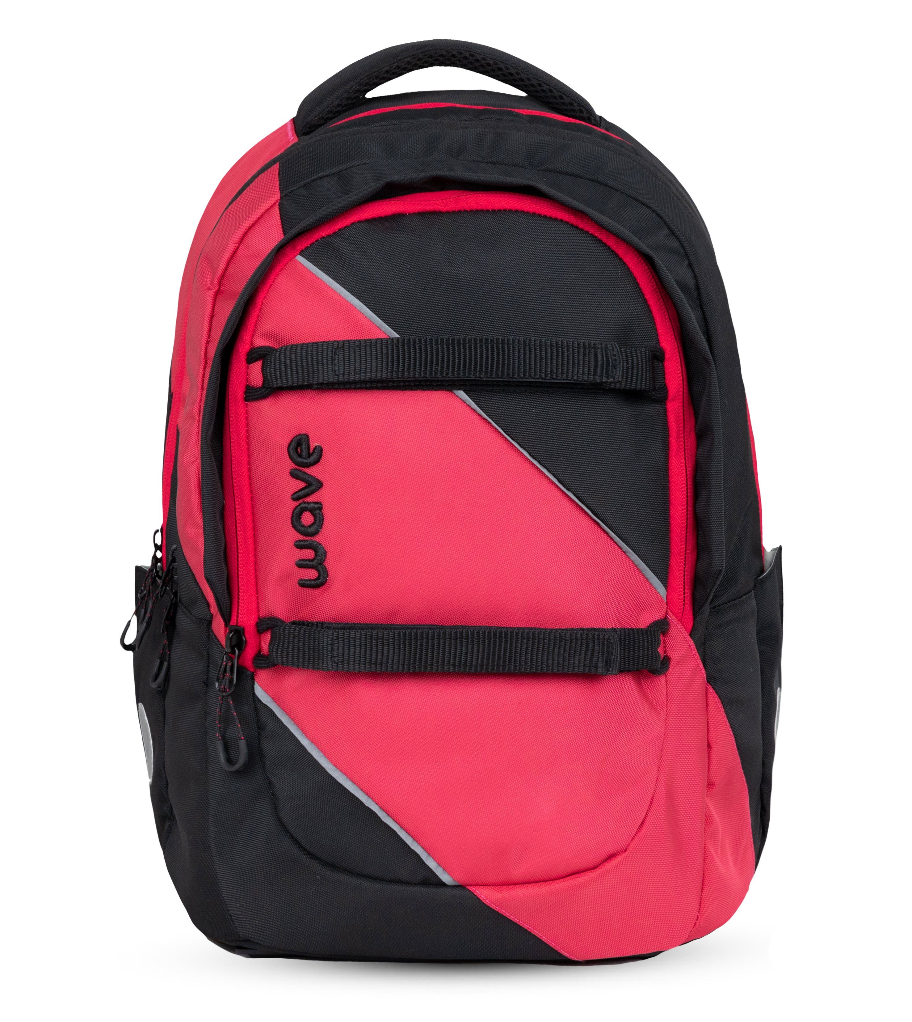 - 3 Hauptfächer; 1 Laptopfach; 1 kleine Reißverschlusstasche; 2 Seitentaschen; Gurte am Vorderteil für Jacke, 1 Isoliertes Fach für Brotdose, Befestigungsriemen