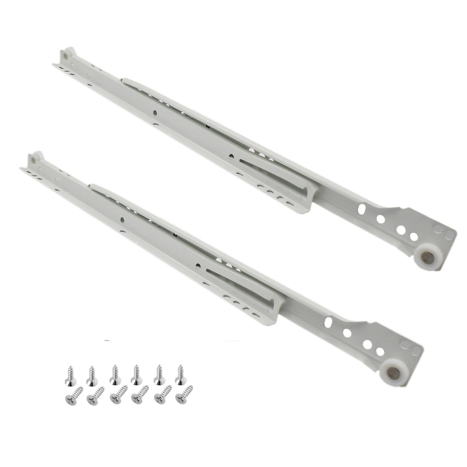 Wayne Hardware Schubladenauszug passt für die meisten unten/an der Seite montierten Schubladensysteme. Das Schubladenführungsset besteht aus kaltgewalzten Stahlschienen mit einer weißen Pulverbeschichtung und selbstschmierenden Kunststoffrollen. Die Tragfähigkeit beträgt 20 kg pro Schubladenpaar. Lässt sich schnell zusammenbauen, die Schubladenführungen lassen sich mit dem mitgelieferten Schraubensatz einfach von der Seite einschrauben. Es eignet sich für eine Vielzahl von Anlässen und eignet sich sehr gut für den Einbau in Küchenmöbel, Küchenschränke, Badezimmer- und Büroschränke, Schreibtische, Wohnzimmerschränke, Kleiderschränke usw. und bietet größtmöglichen Komfort für das Leben. Größe: Длина 450 mm (17.71 in), Breite 20 mm (0.78 in), Dicke 12,5 mm (0,49 in). Installationsanforderungen: *Nettotiefe im Schrank> Длина der Schubladenschiene + 3 mm (0.11 in)*. Schubladenführungen bestehen aus Metall, Bitte schützen Sie Ihre Hände, Es wird empfohlen, bei der Montage Handschuhe zu tragen, Bei Fragen wenden Sie sich bitte zunächst an uns. Wayne Hardware – Wir bieten hochwertige Hardware.