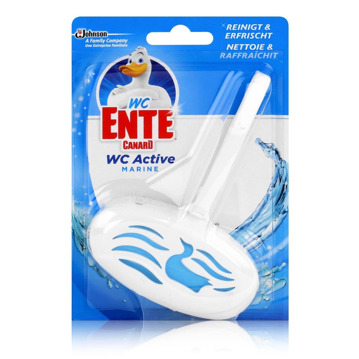 Lieferumfang und AnwendungshinweiseIm Lieferumfang enthalten ist je nach Verpackungsart ein WC Ente WC Active Einhänger Marine (1x 40g). Für eine optimale Anwendung und Wirkleistung befestigen Sie den WC Ente WC Active Einhänger Marine so an Ihrem Toiletten-Beckenrand, dass der WC-Ente Toilettenreiniger bei jedem Spülvorgang mit dem Spülwasser umspült wird. Dabei den WC-Einhänger ausklappen und sicherstellen, dass das Toilettenbecken zuvor sauber ist. Die Reinigungskraft des WC Ente WC Active Einhänger Marine reicht so bis zu 3 Wochen und sorgt so für Entlastung bei der Sauberhaltung Ihrer sanitären Einrichtung, sowie einer kontinuierlichen Frische mit vorbeugender Wirkung gegen Kalkablagerungen und Verschmutzungen. Sowohl in privaten Räumlichkeiten als auch in gewerblichen sanitären Anlagen bietet der WC Ente WC Active Einhänger Marine eine effektive Unterstützung zur Reinigung des Toilettenbeckens . Ist das Produkt restlos aufgebraucht, können Sie mit dem WC-Ente WC Active Nachfüller das Produkt bei Bedarf