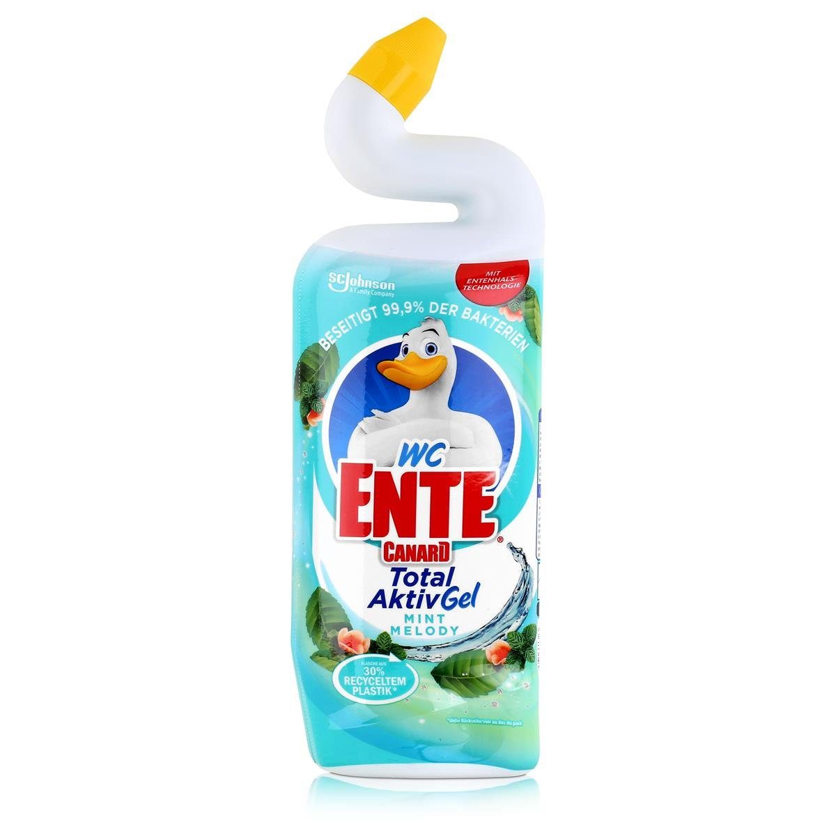 Im Lieferumfang enthalten: WC Ente WC-Reiniger Total AktivGel Mint Melody 750mlInhaltsstoffe | Wasser, Hydroxyethyl Cellulose, Sodium Hydroxide, Ethoxylated Alcohol, Formic acid, Duftstoff, Liquitint Blue MC, Liquitint Bright Yellow Dye |