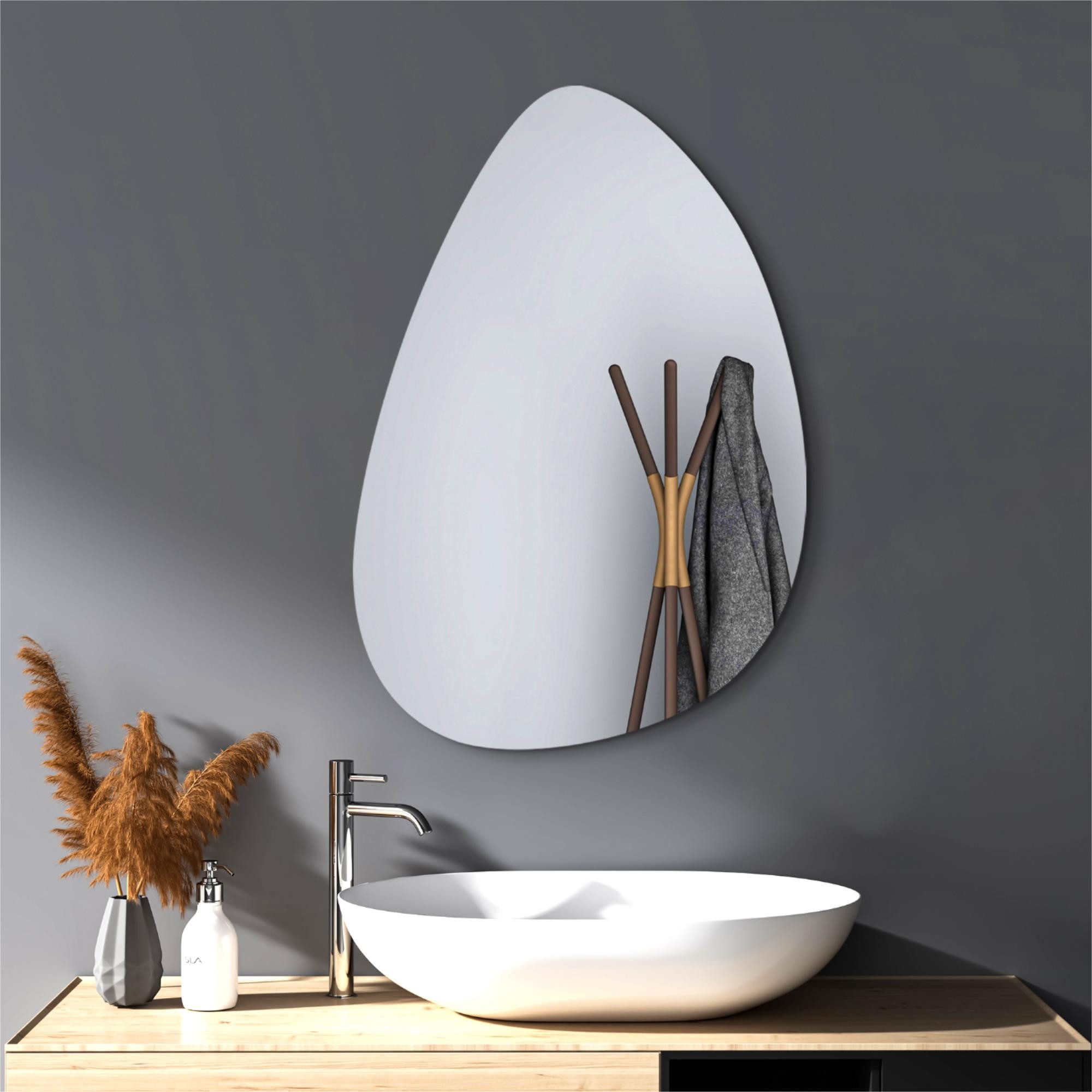WDWRITTI Design Asymmetrischer Wandspiegel Wassertropfen 45x70cm - 5mm HD Glas